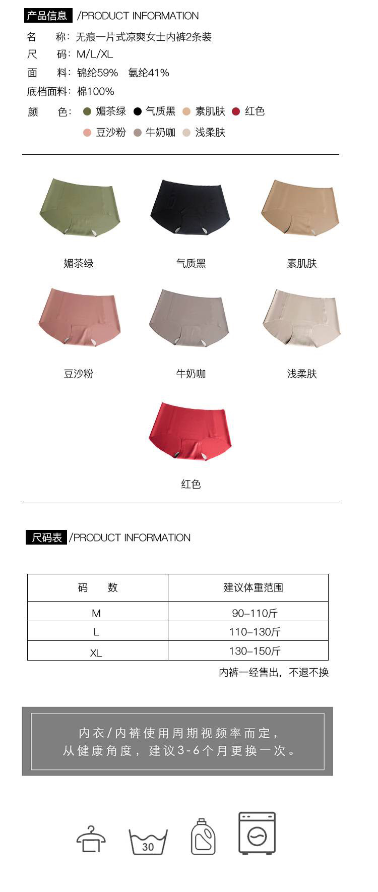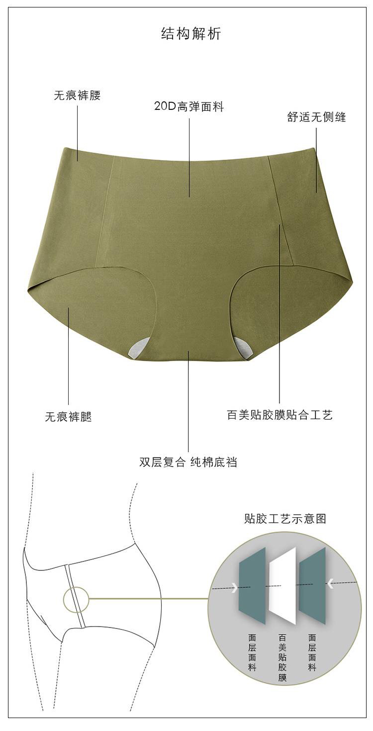 【日本代工】新专利果冻条内衣同款配套无痕内裤2条装