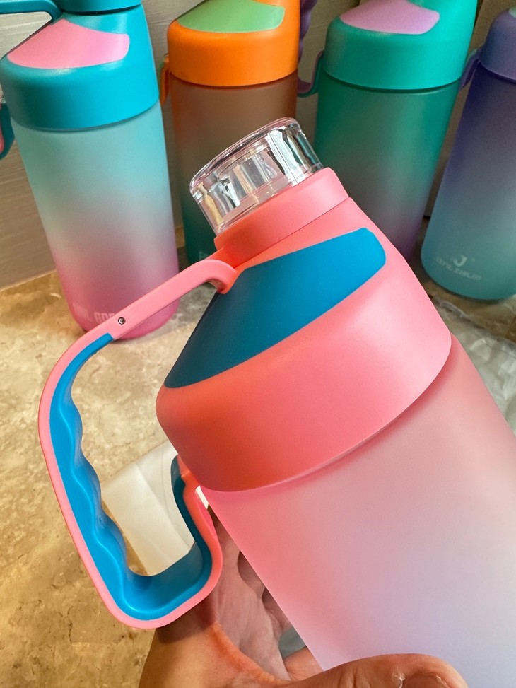 巨无霸超大号水杯,侧边带弧形手提把手方便出行