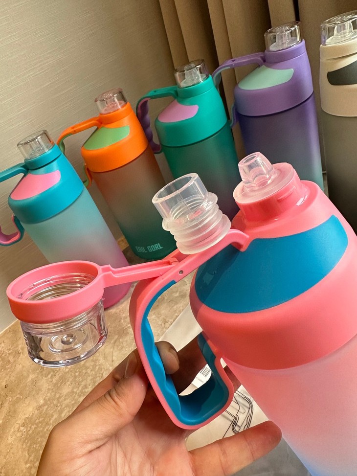 翻盖带密封圈防尘盖,侧放都能够保证百分百防漏,宽口设计不仅能装水,还能容纳水果茶等含有大块可食用饮品