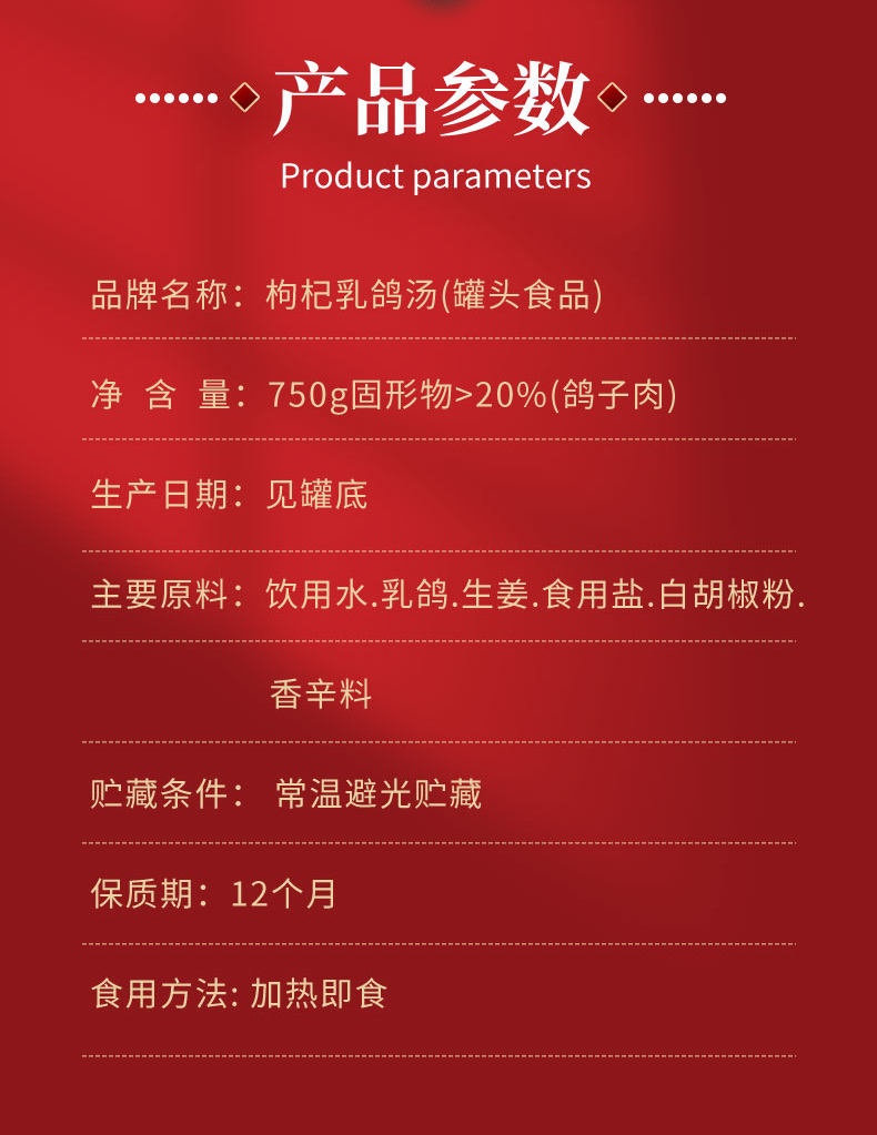 【榕膳堂萨露蒂】枸杞乳鸽汤750g*2/箱 加热即食