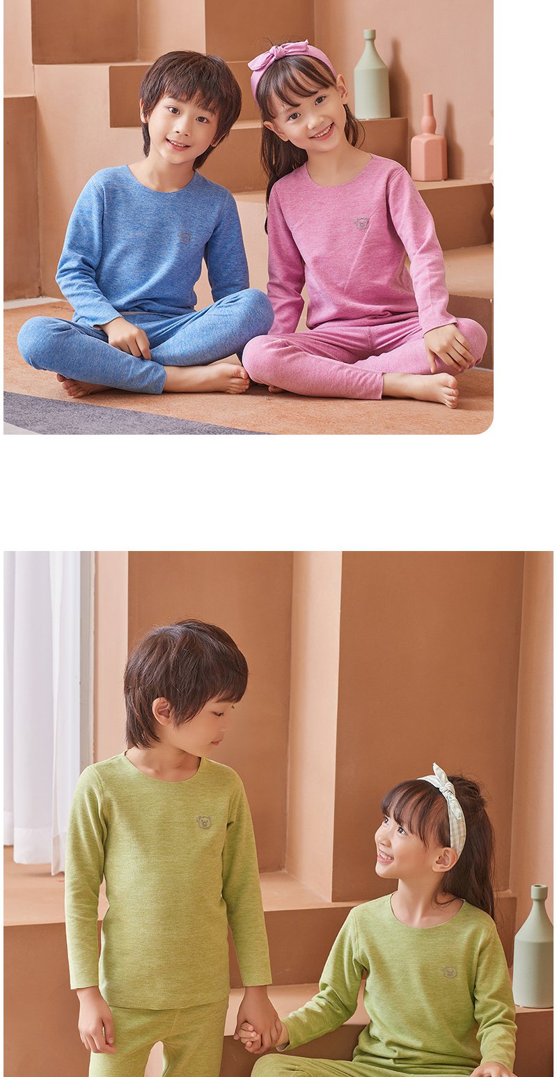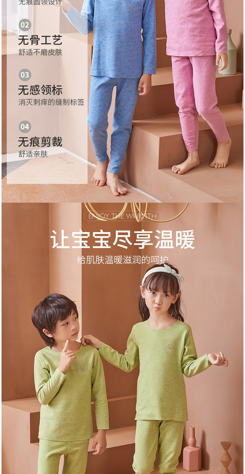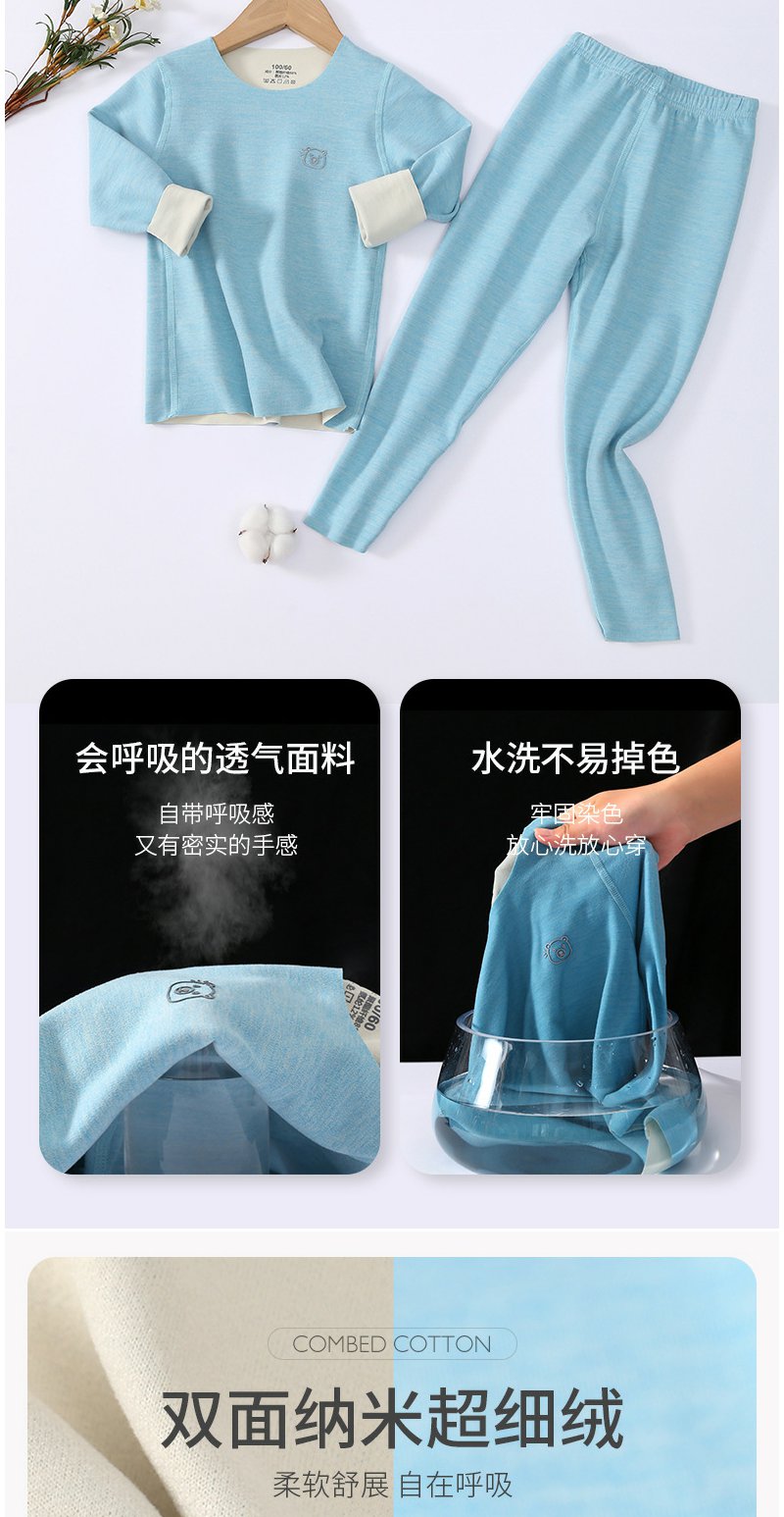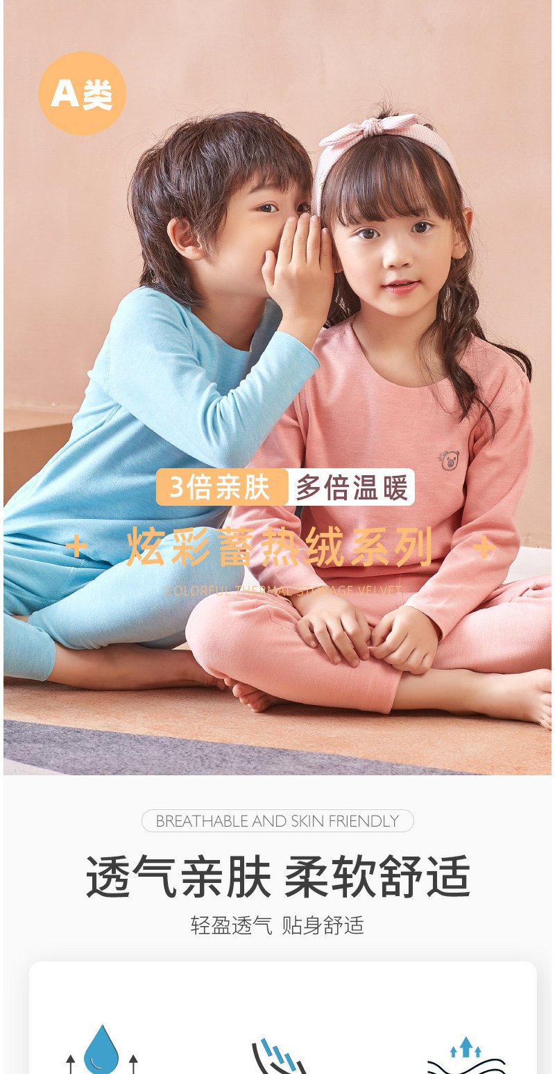 【每满2件减10元】【给孩子温暖的爱】儿童德绒保暖套装!黑科技发热技术!双面磨毛AB面料!无痕隐形!舒适度暴赞!