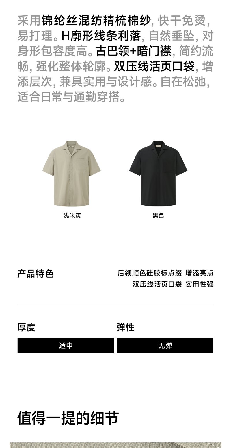 CHINISM赤尘 古巴领休闲短袖衬衫男2025夏季免烫上衣半袖简约衬衣 商品图3