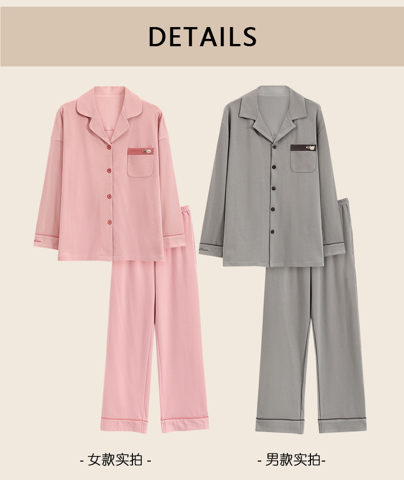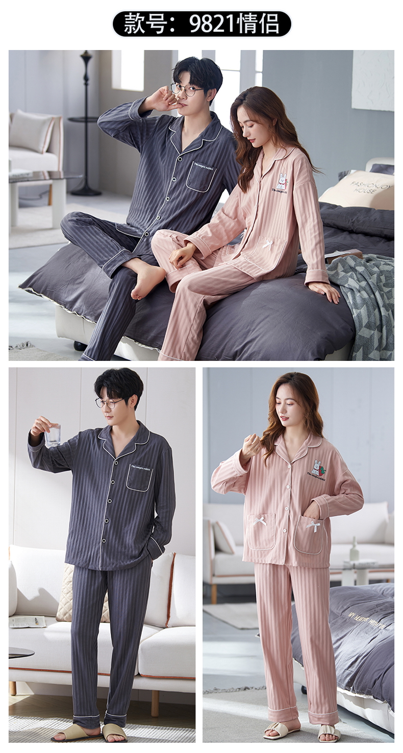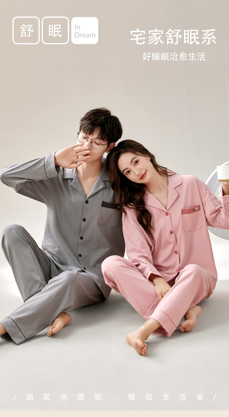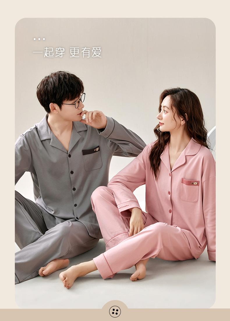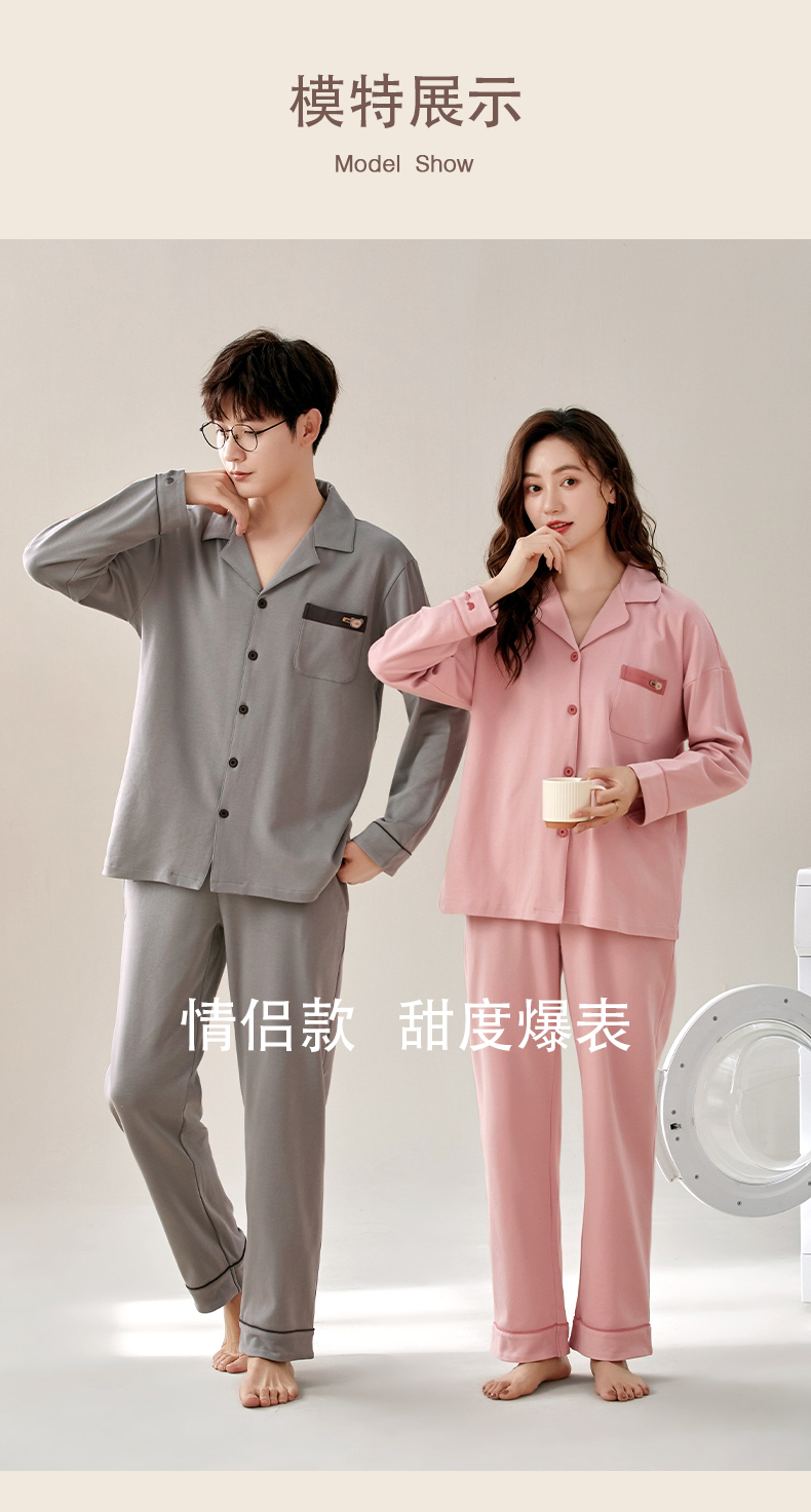 自然醒星河情侣睡衣春秋季针织棉长袖男女士宽松大码开衫纯色家居服两件套QH