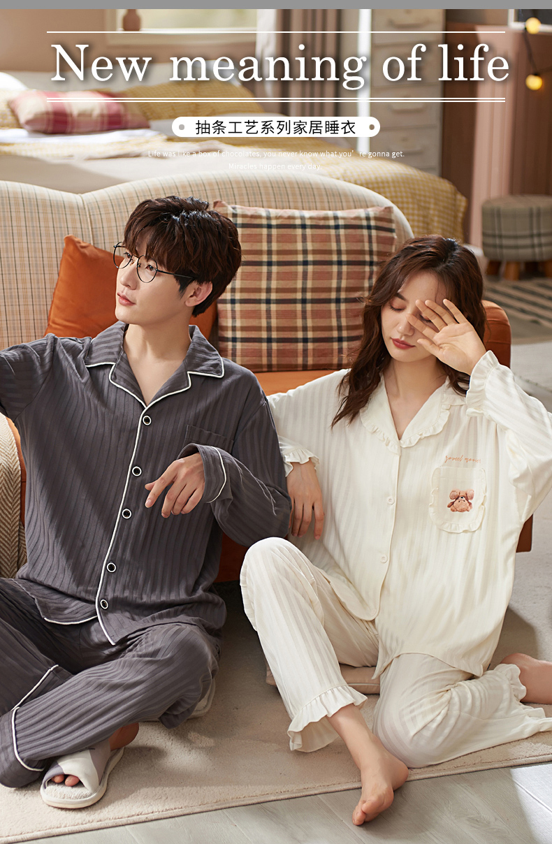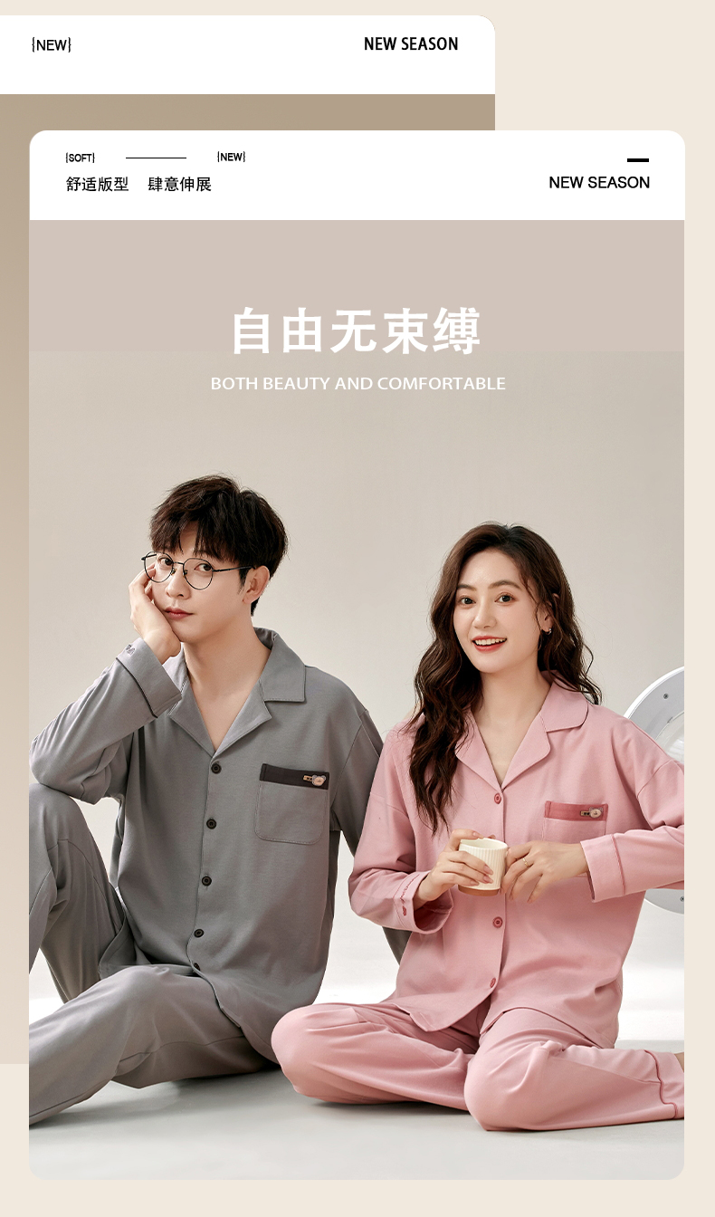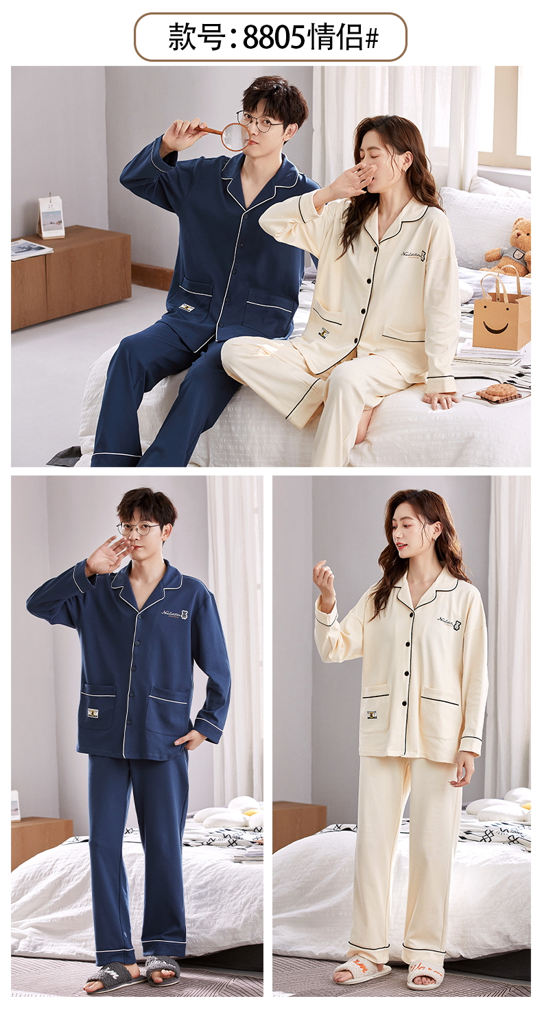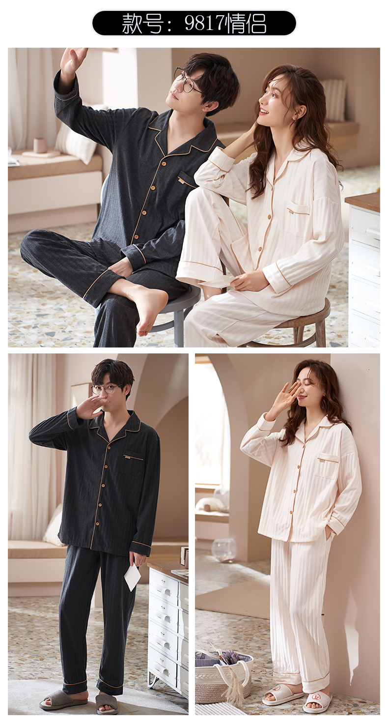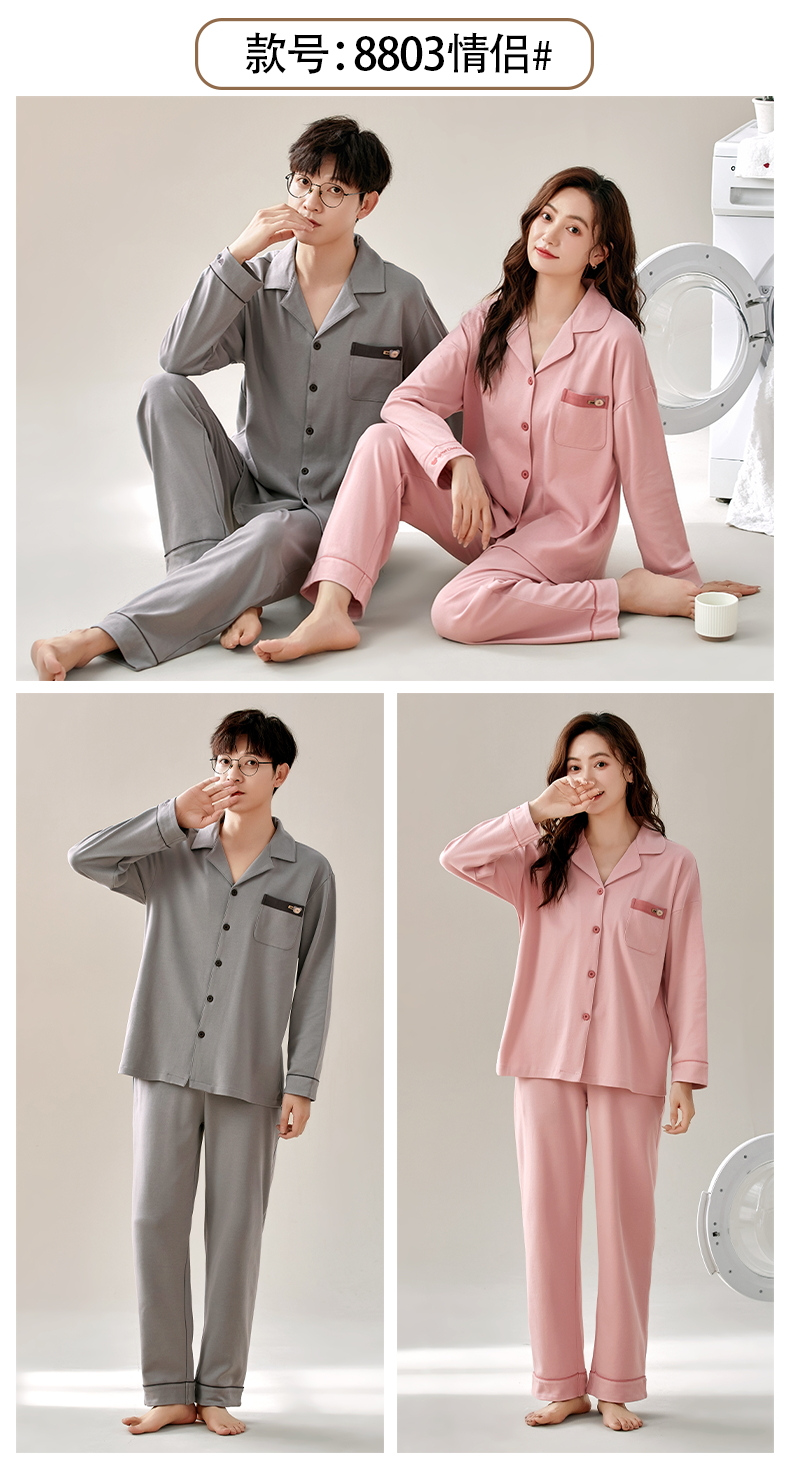 自然醒星河情侣睡衣春秋季针织棉长袖男女士宽松大码开衫纯色家居服两件套QH