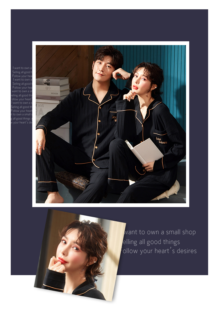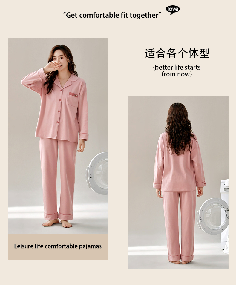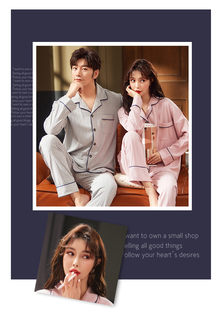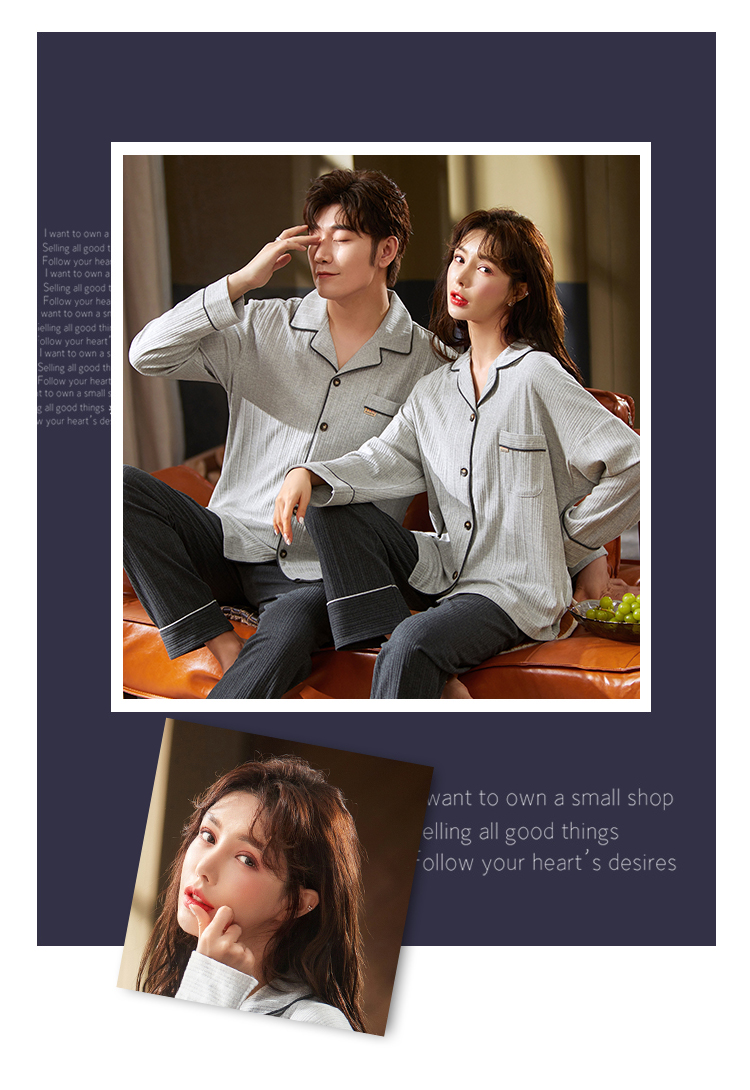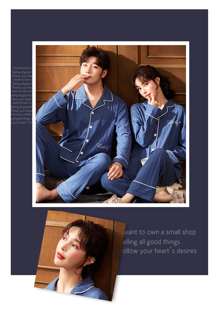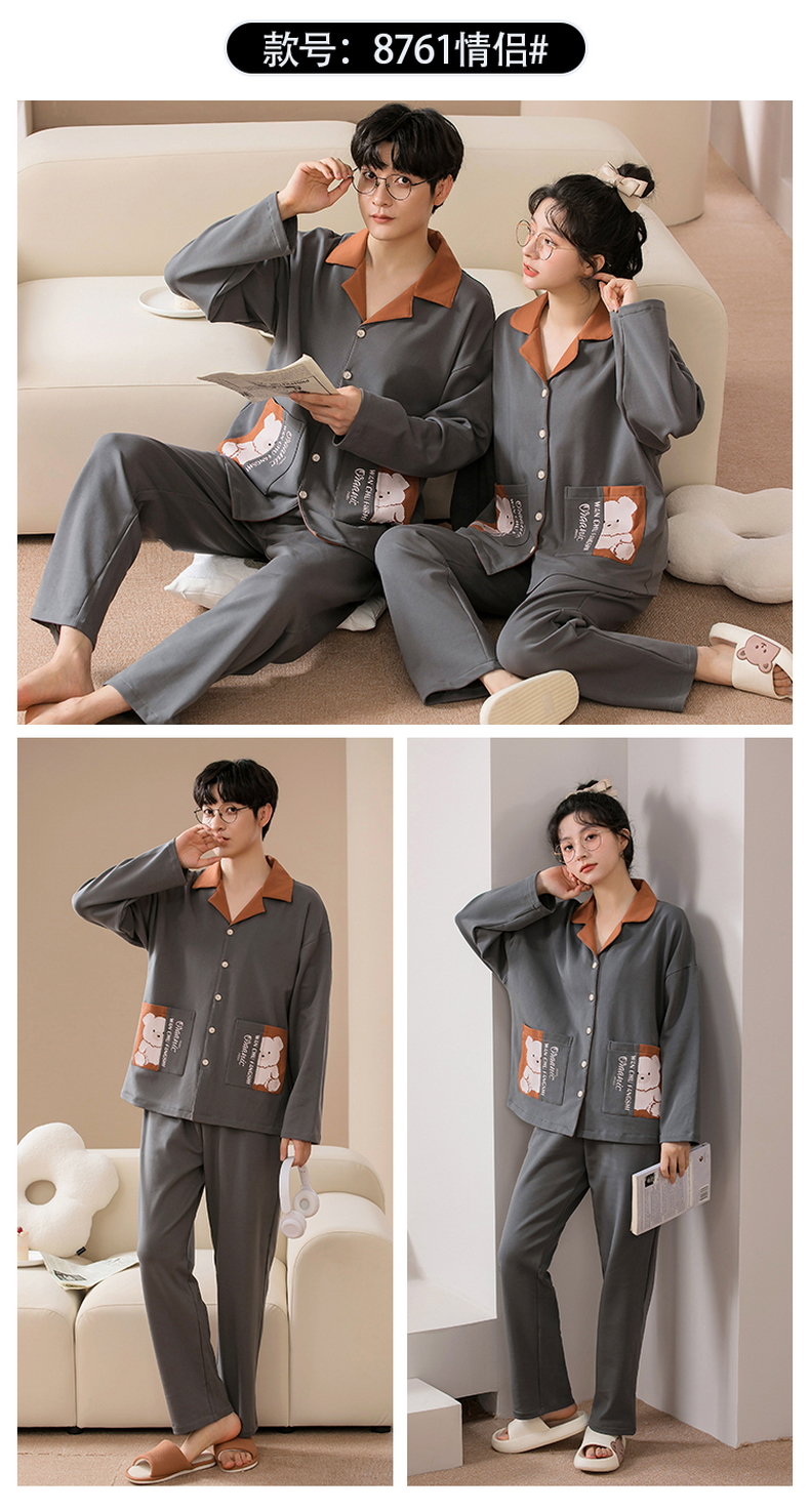 自然醒星河情侣睡衣春秋季针织棉长袖男女士宽松大码开衫纯色家居服两件套QH