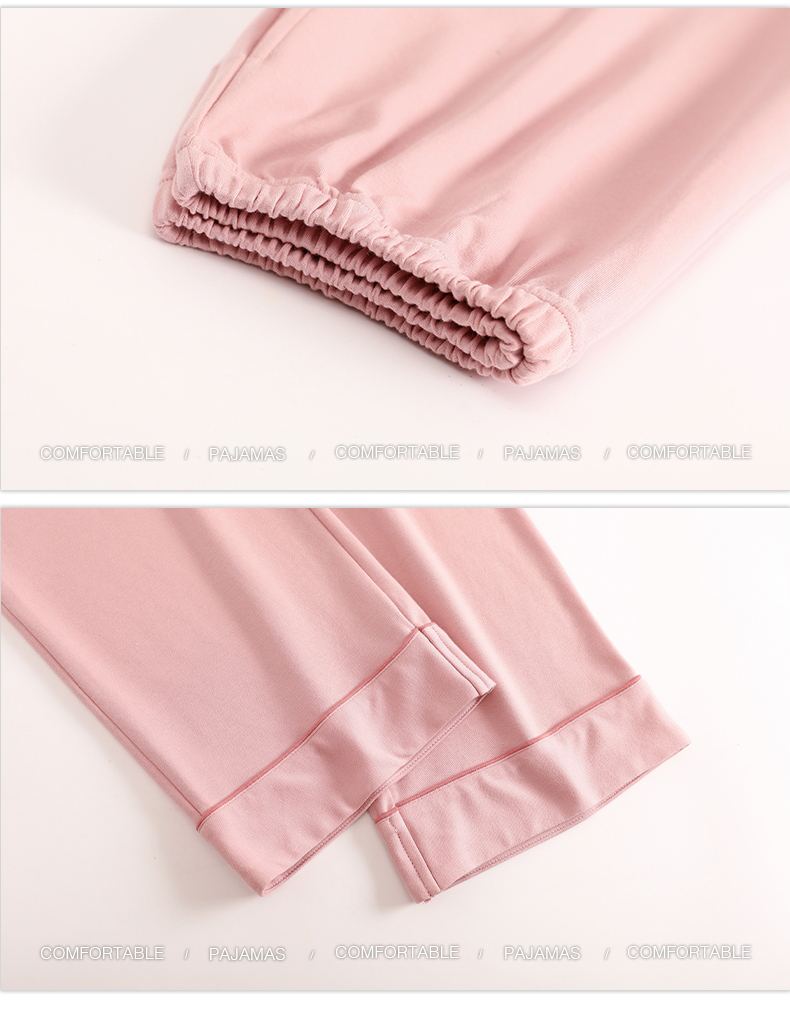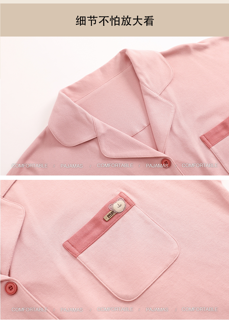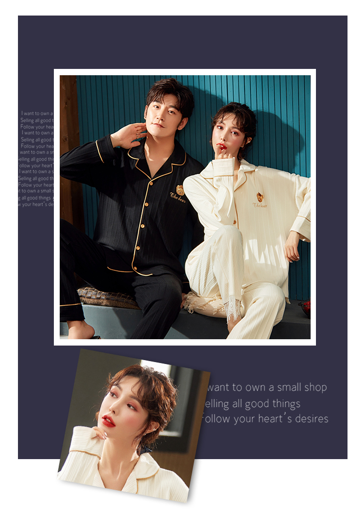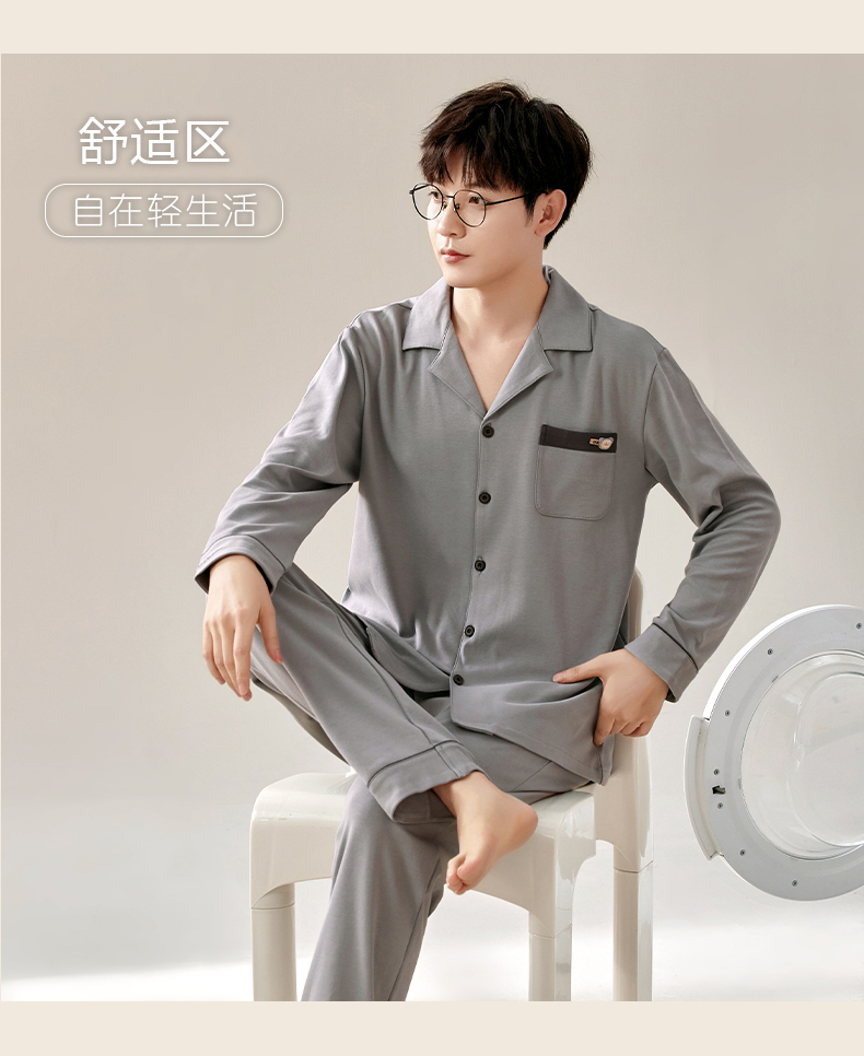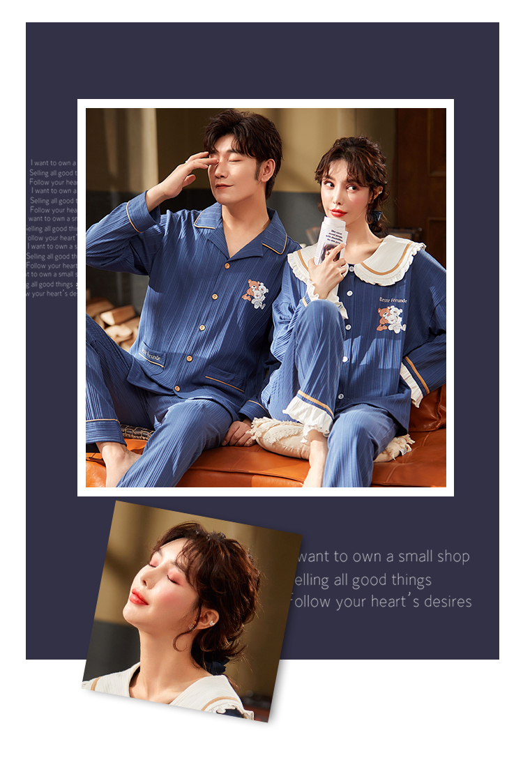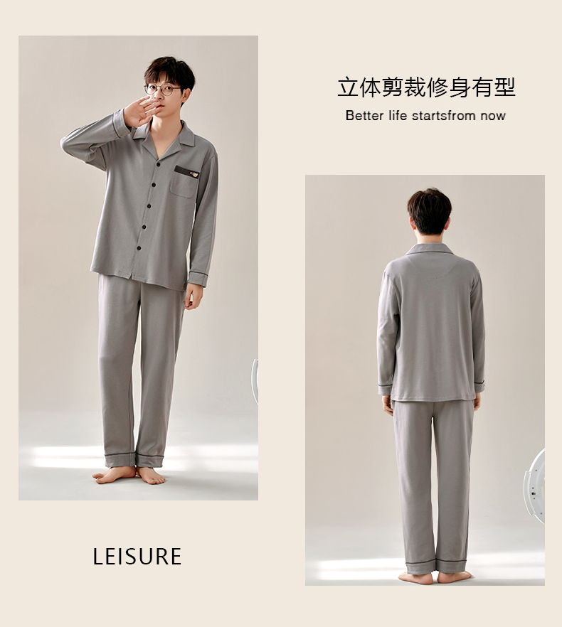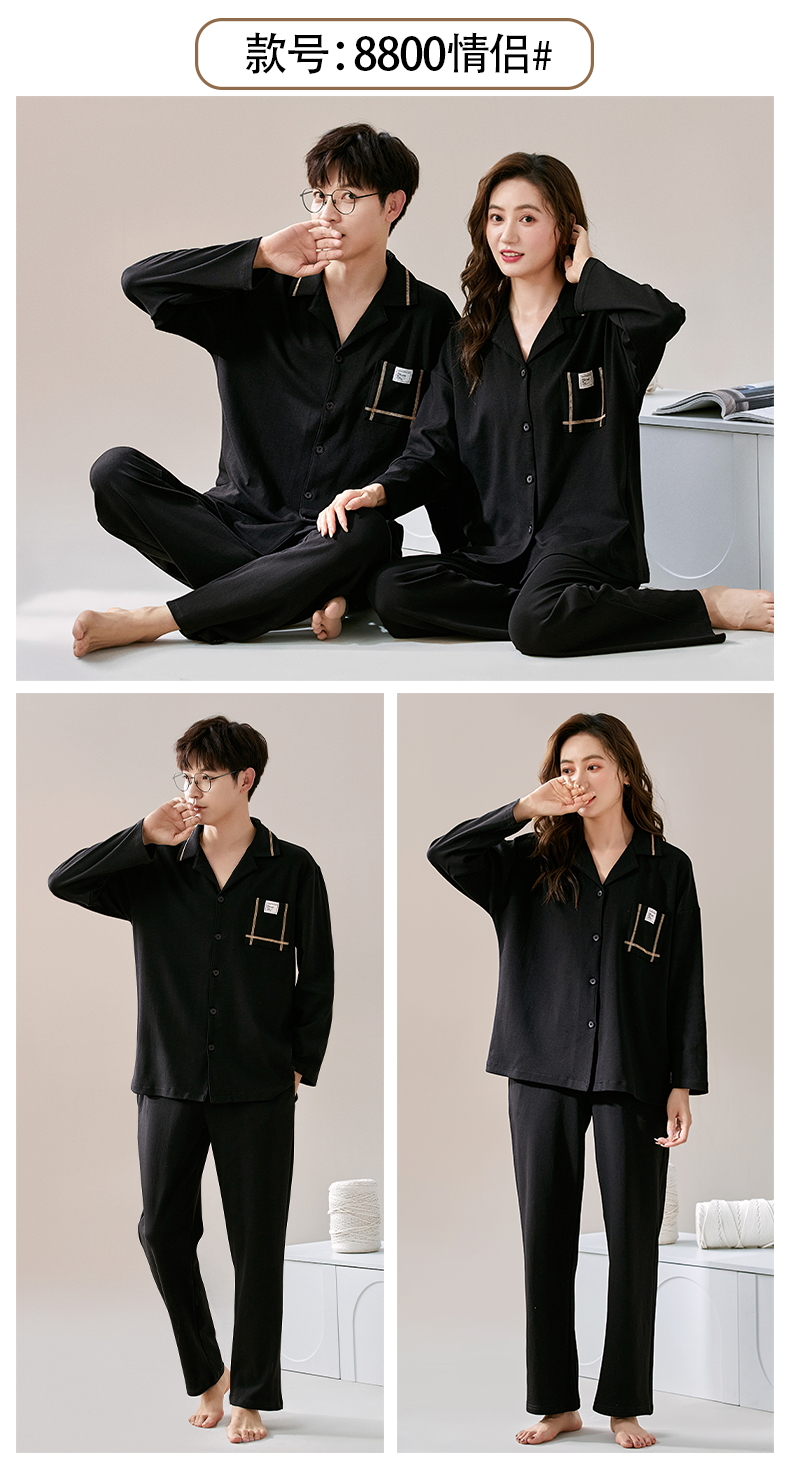 自然醒星河情侣睡衣春秋季针织棉长袖男女士宽松大码开衫纯色家居服两件套QH
