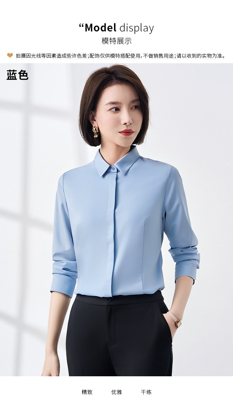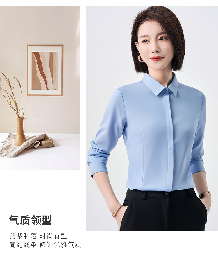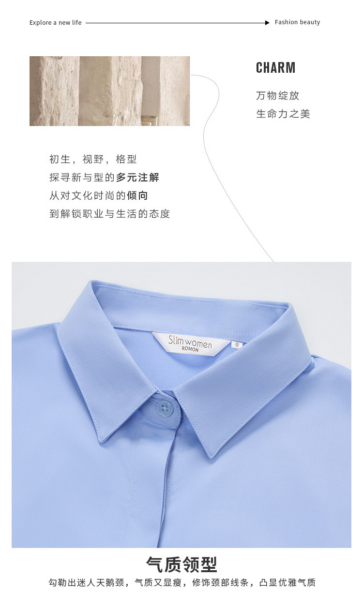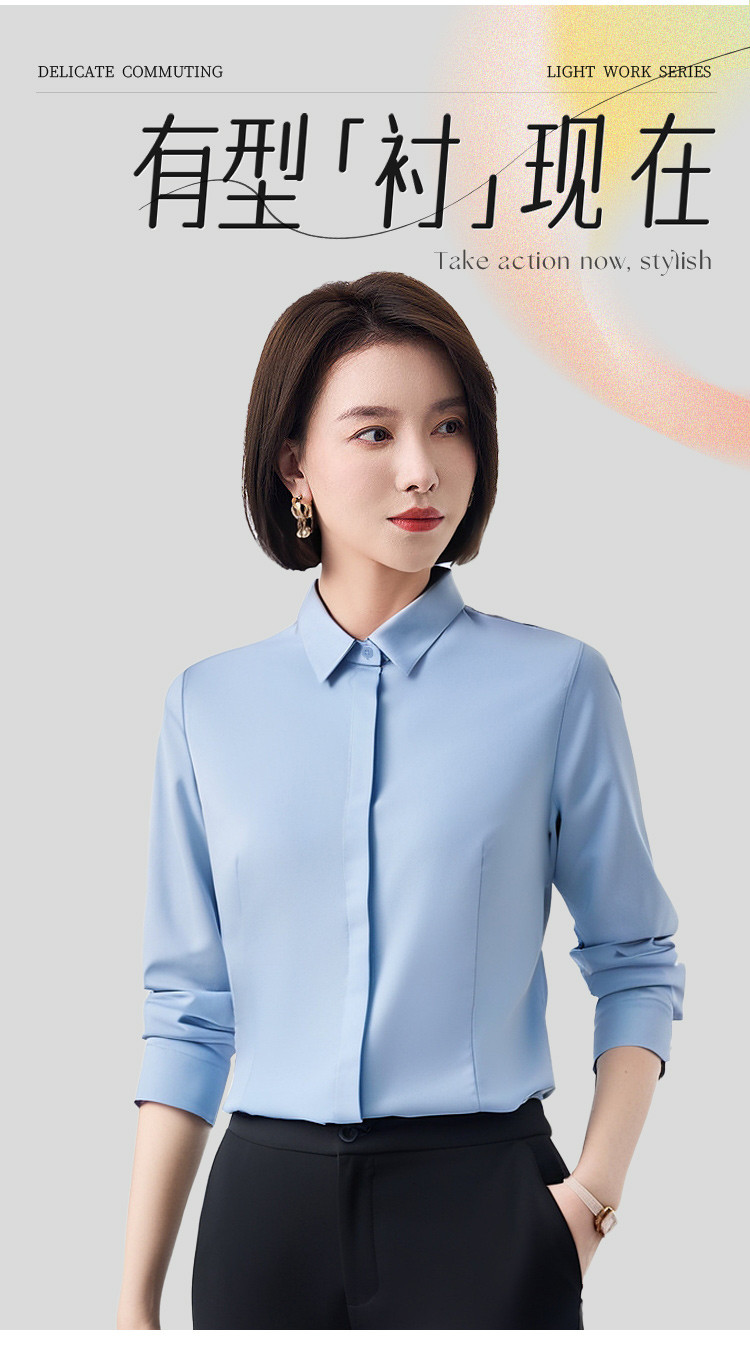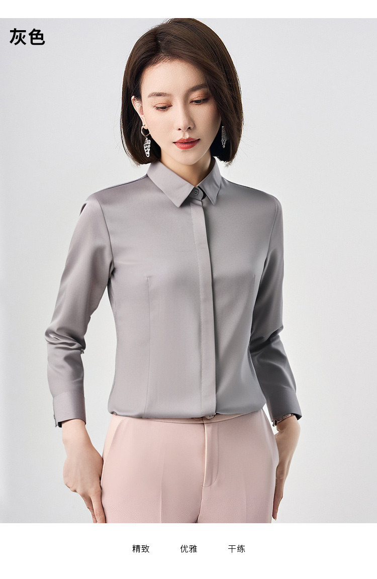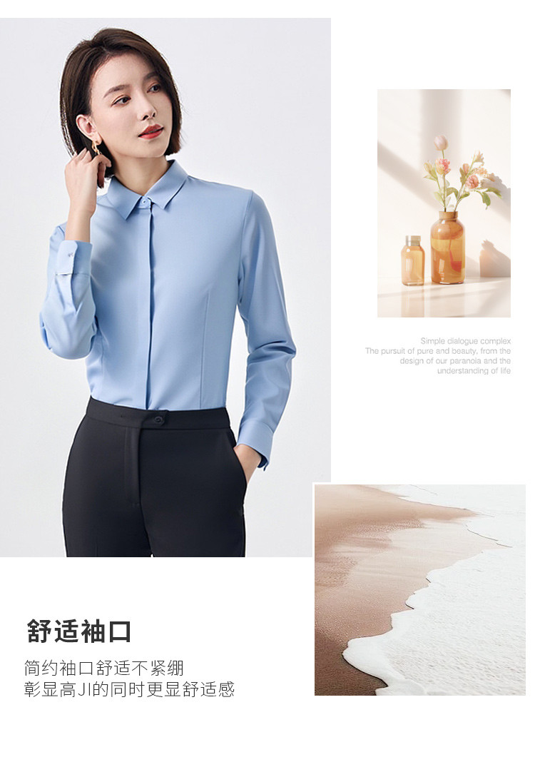 【含莫代尔】罗蒙女士长袖暗门襟防走光衬衫商务通勤简约百搭女上装