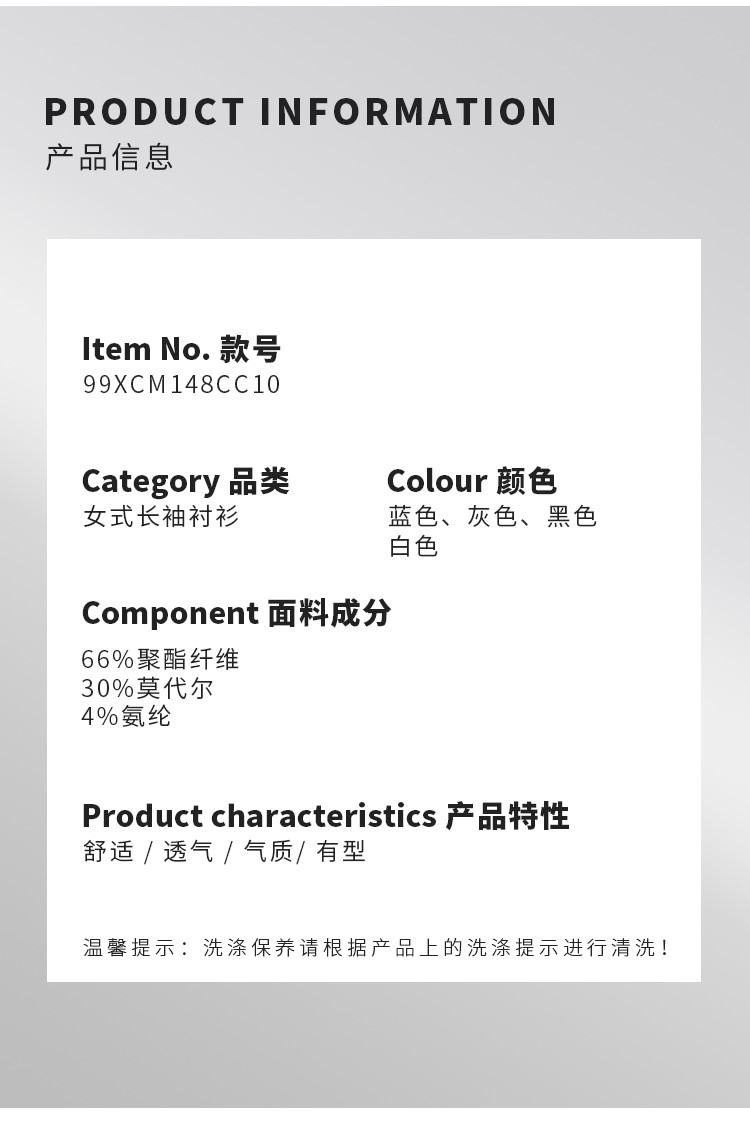 面料:66%聚酯纤维30%莫代尔4%氨纶