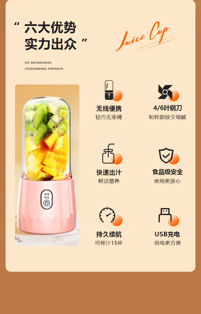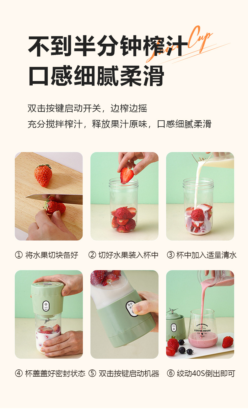 2023新款USB迷你榨汁机便携式榨汁杯家用水果小型多功能果汁机便