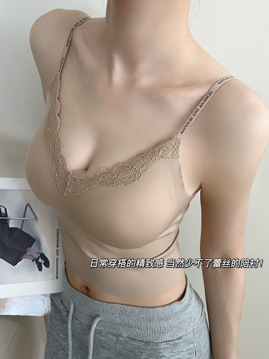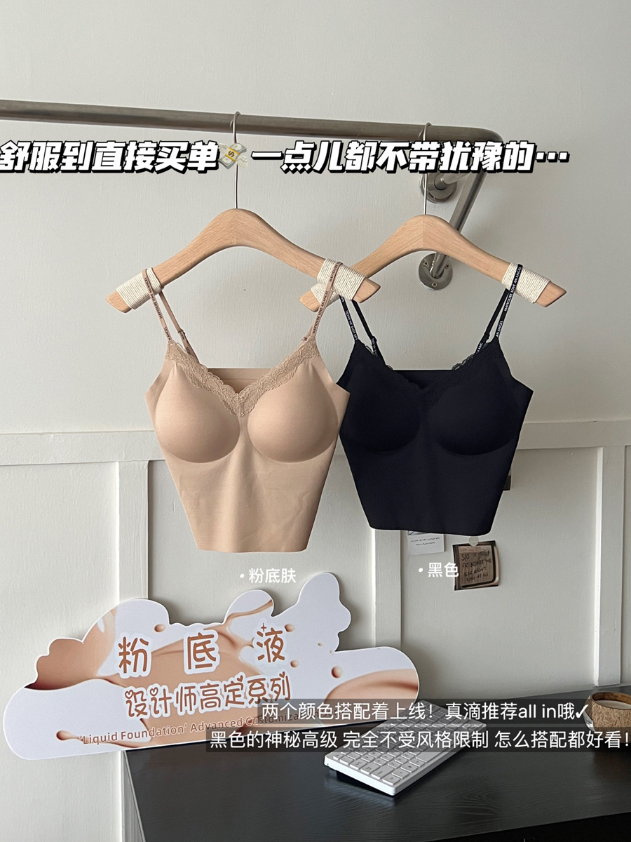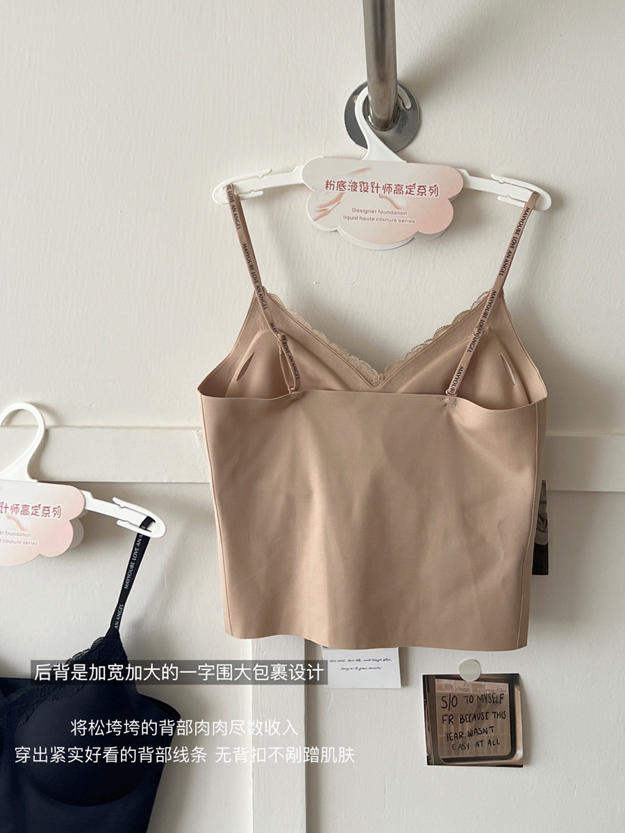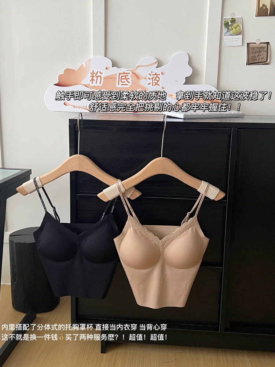 隐形不透!粉底液无痕内衣带胸垫吊带蕾丝美背心内搭外穿显瘦内衣