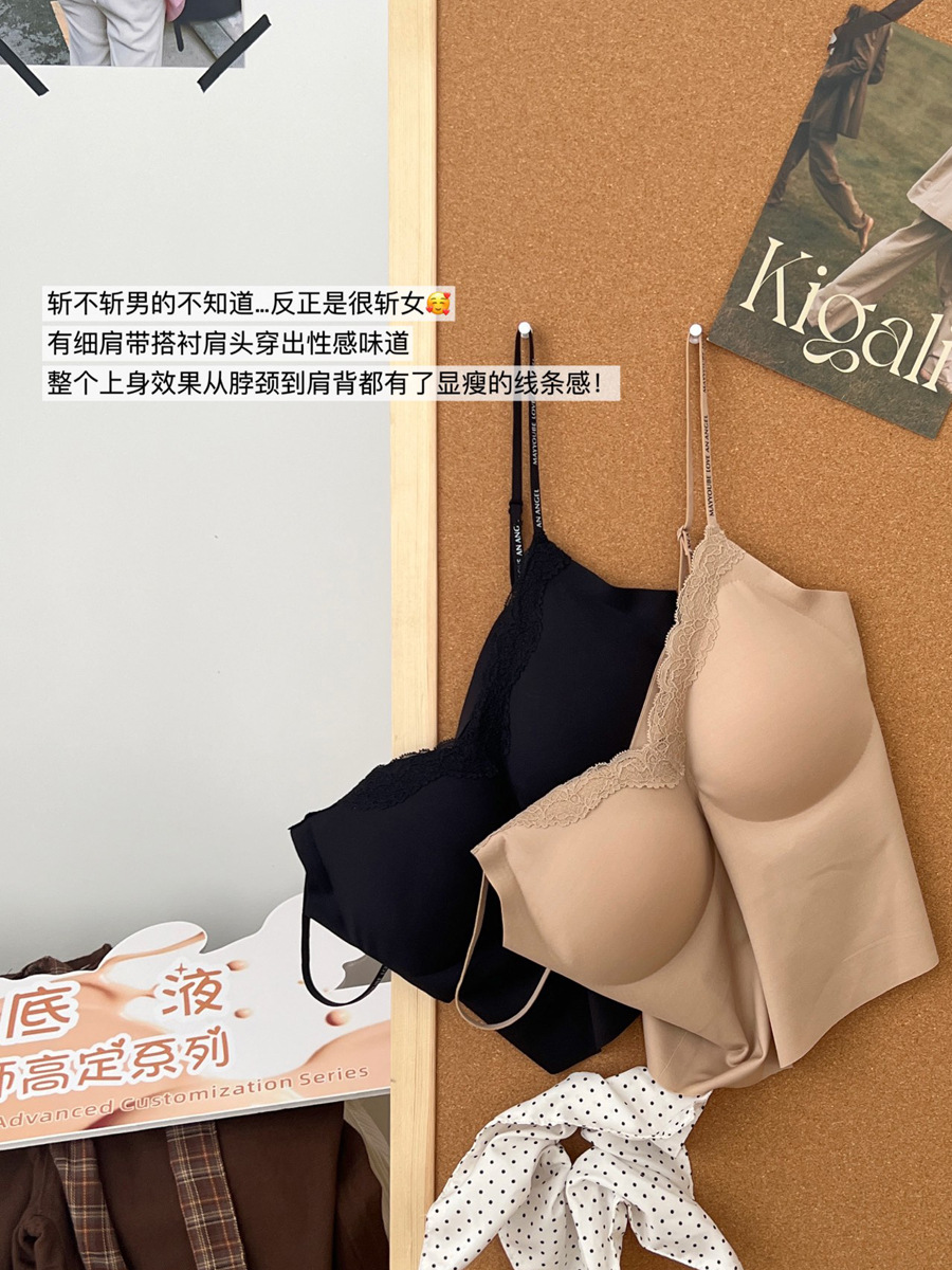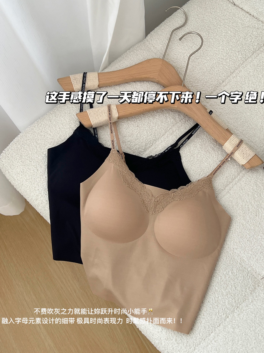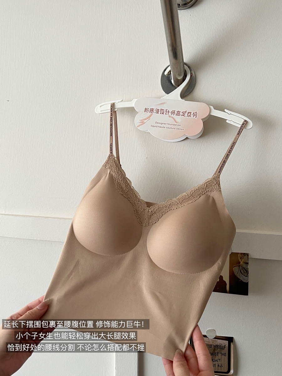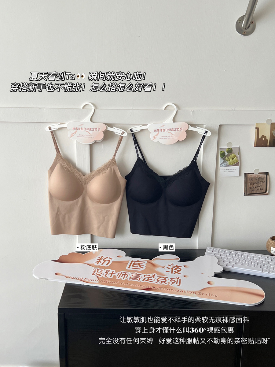 隐形不透!粉底液无痕内衣带胸垫吊带蕾丝美背心内搭外穿显瘦内衣