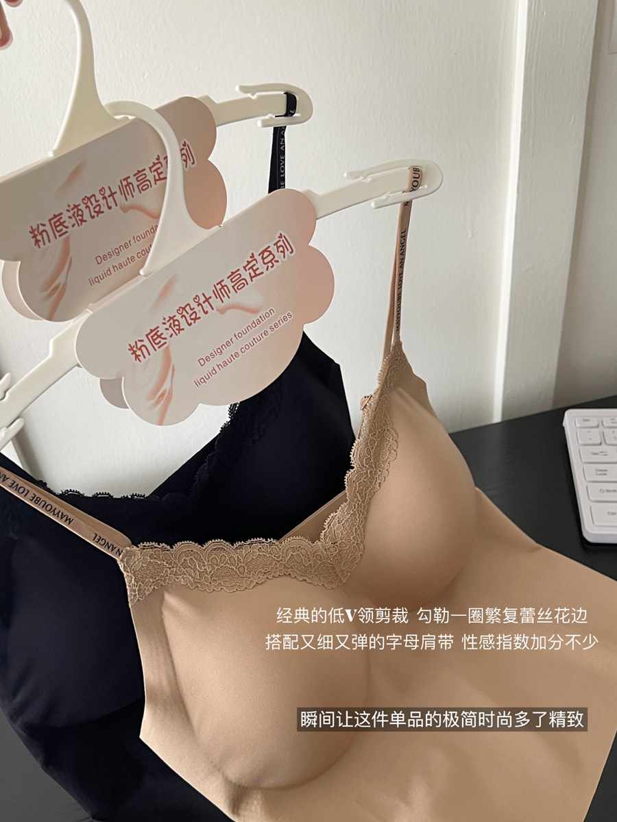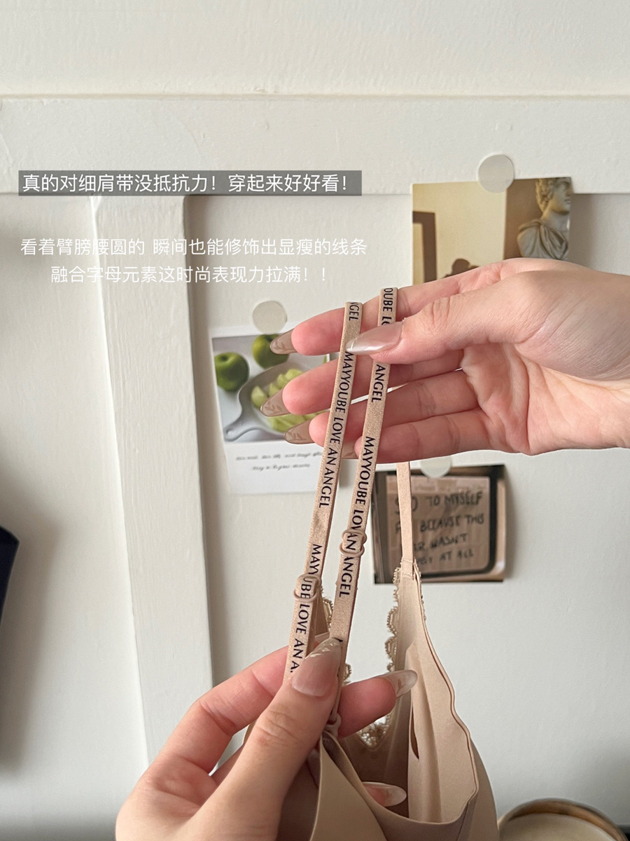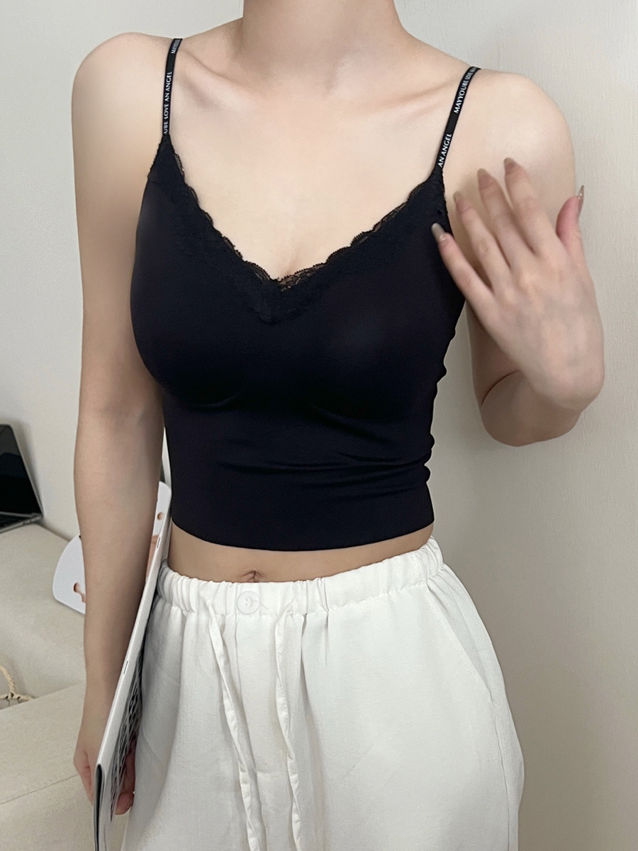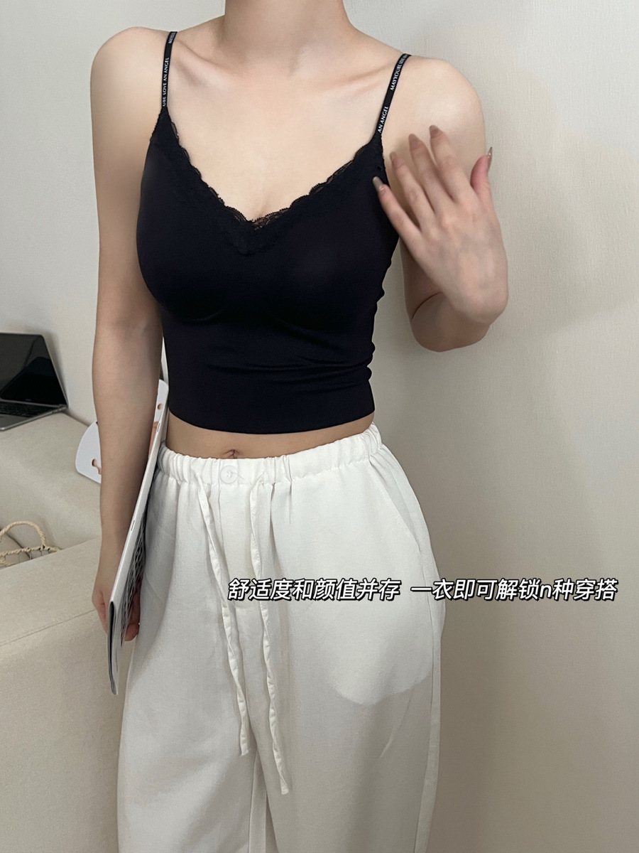隐形不透!粉底液无痕内衣带胸垫吊带蕾丝美背心内搭外穿显瘦内衣