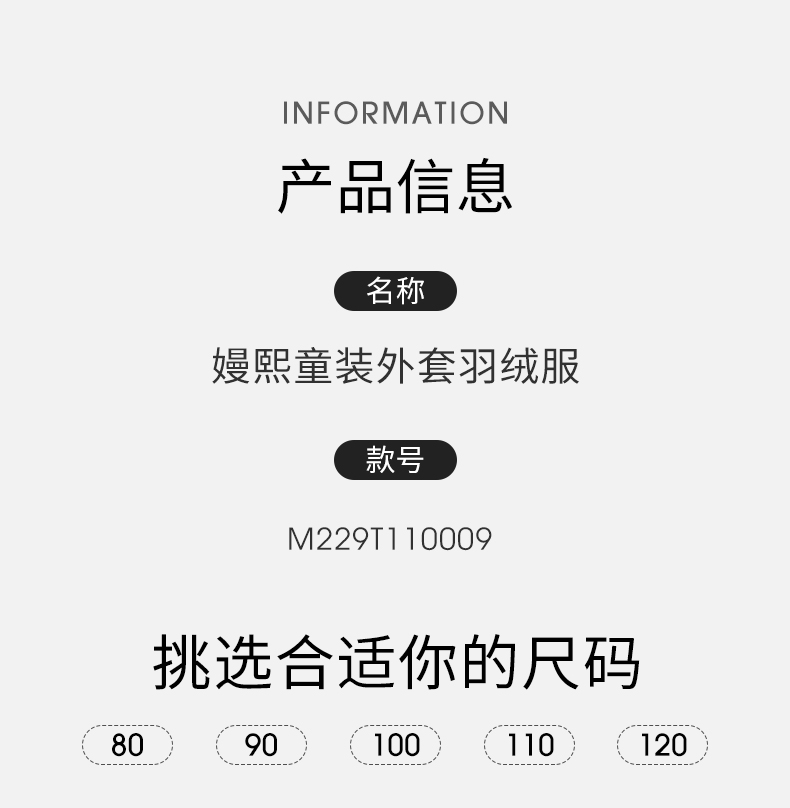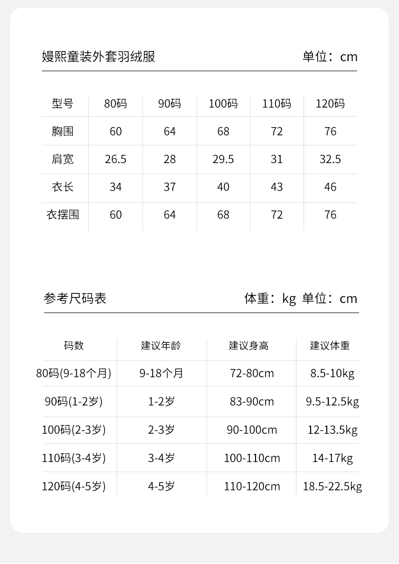 【宝宝服饰】嫚熙童装羽绒服秋冬男童女童白鸭绒外套纯色百搭羽绒服