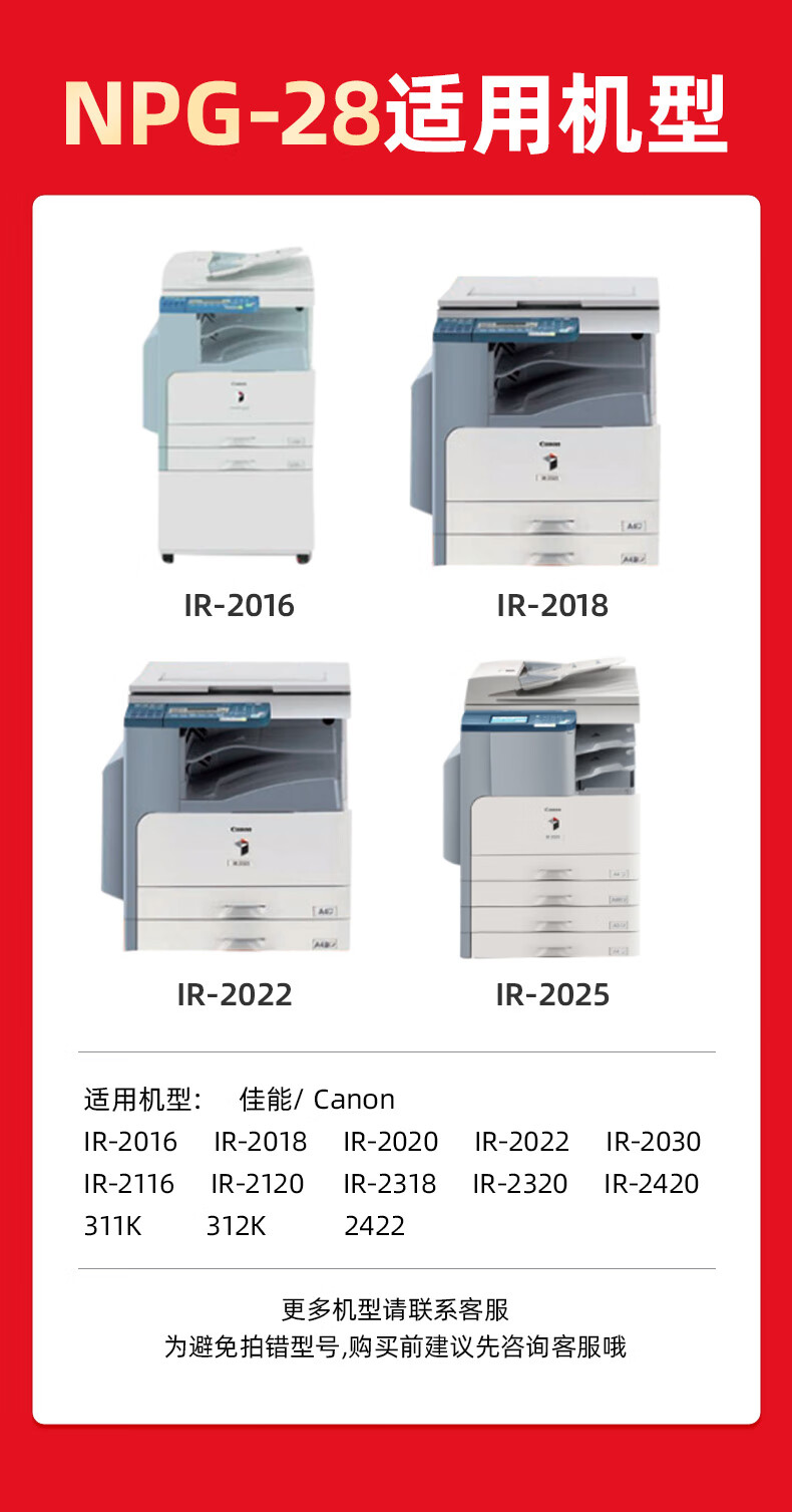 绘威NPG-28粉盒2支装 适用佳能IR-2016 2018 2020 2022 2116 2120 2318 2320 2420 311K 312K 2422墨粉