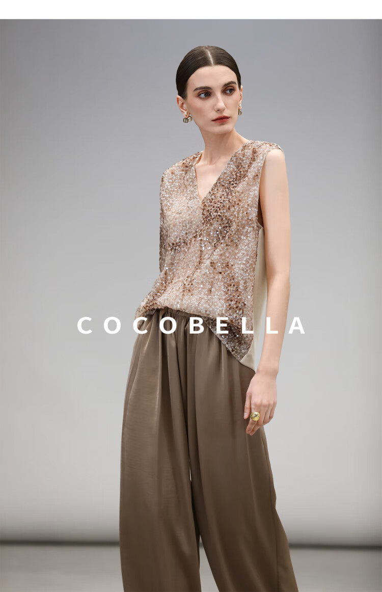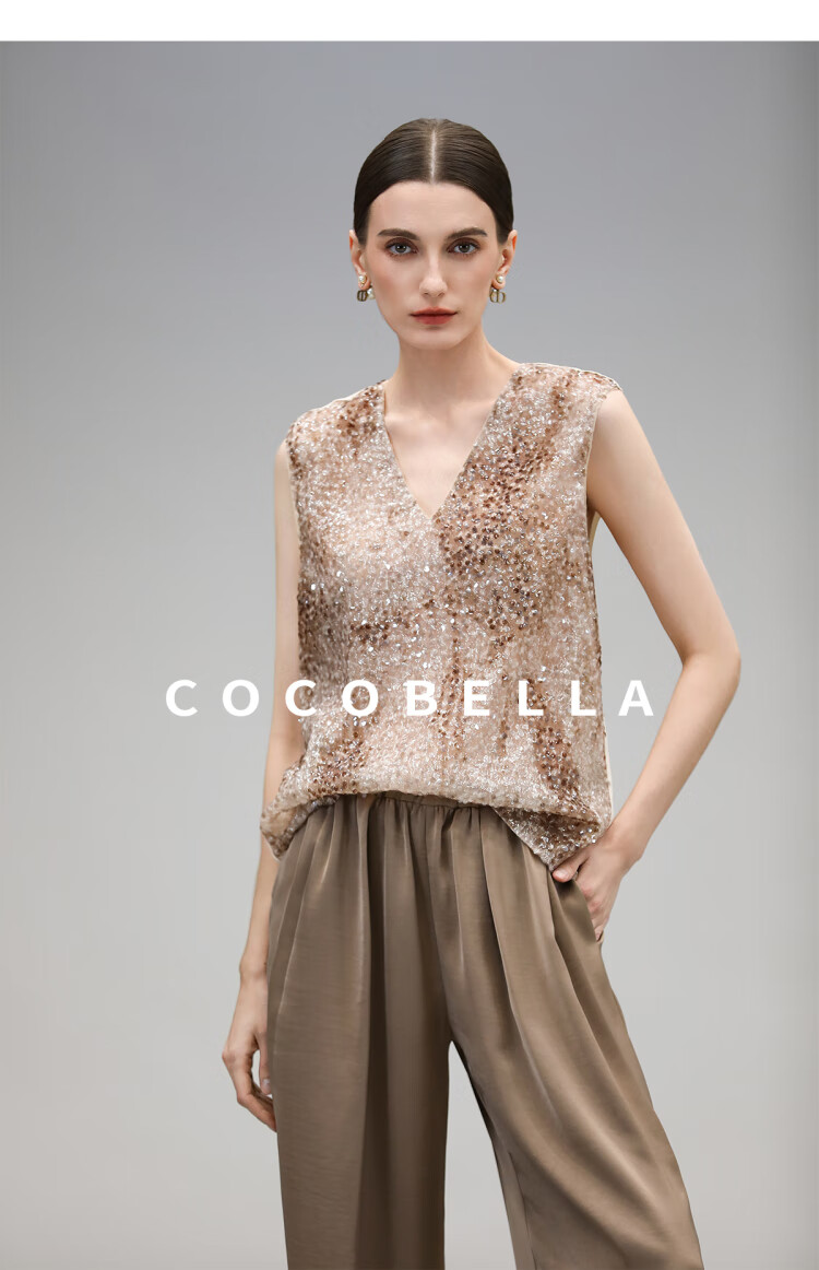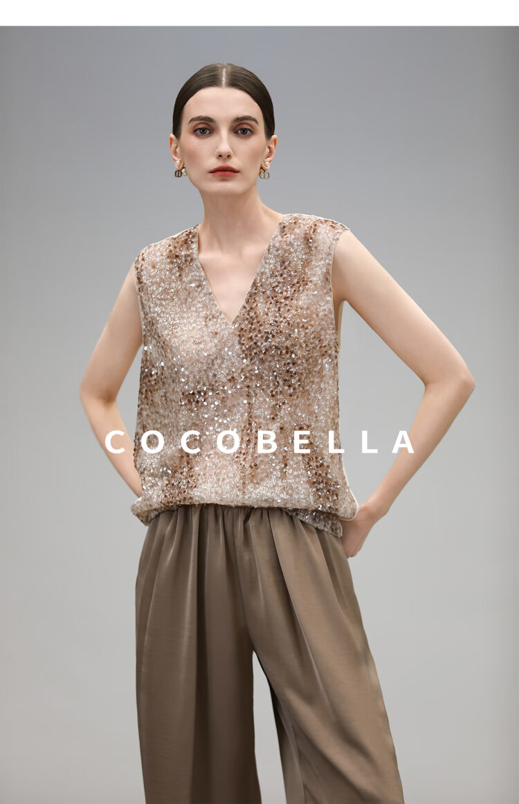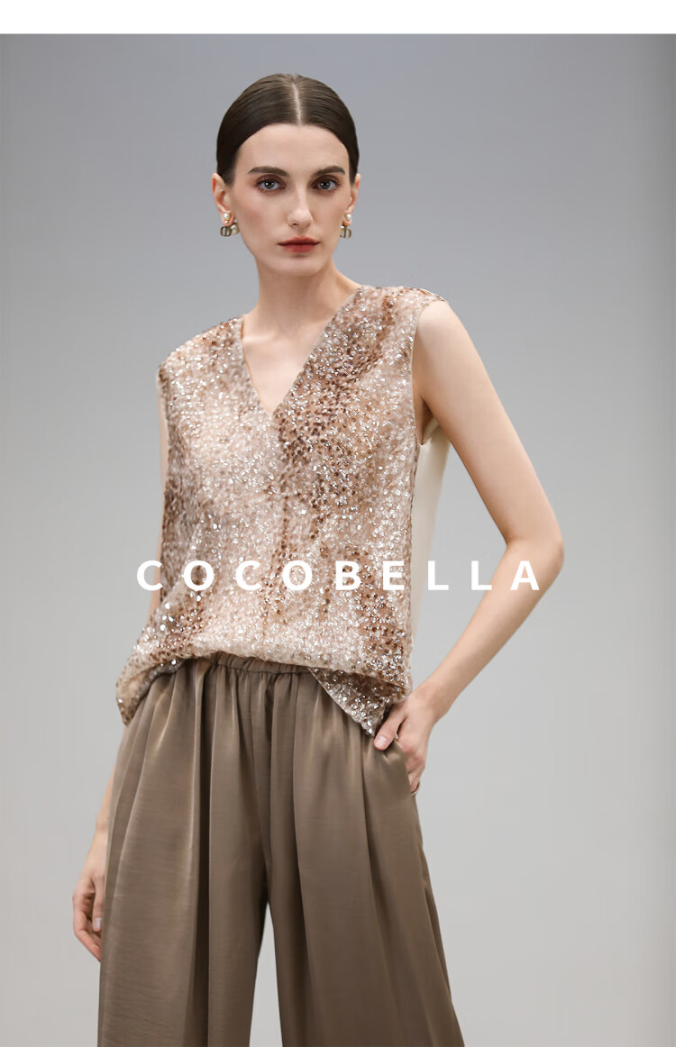 COCOBELLA重工渐变亮片绣花背心春夏轻奢风可外穿吊带VT0029