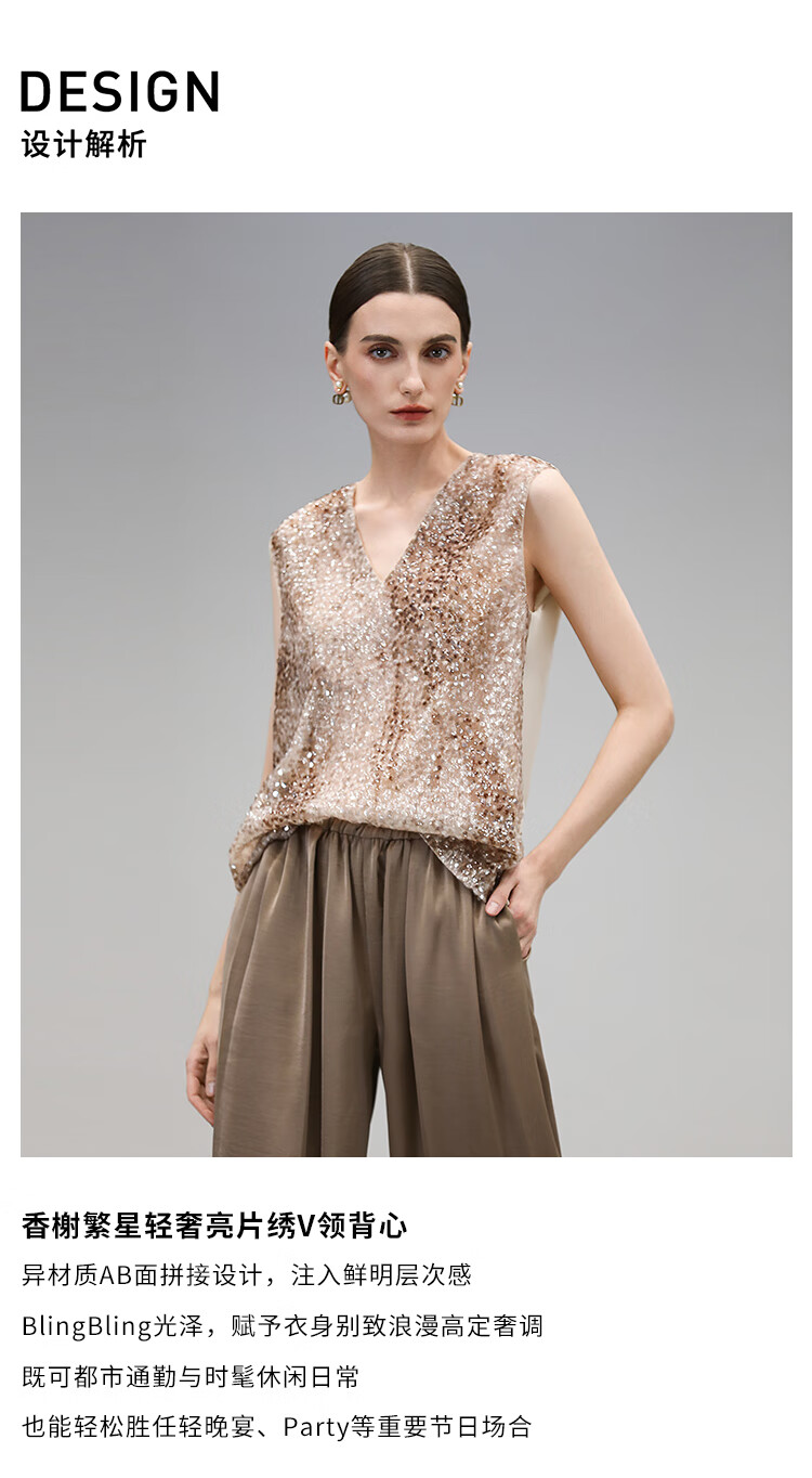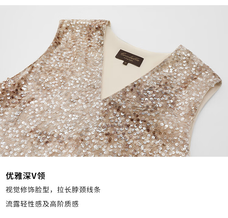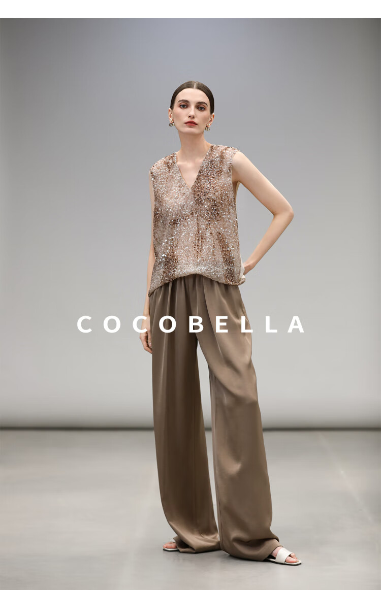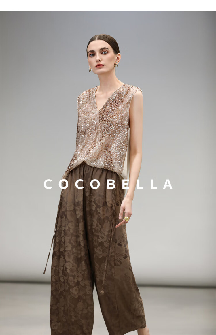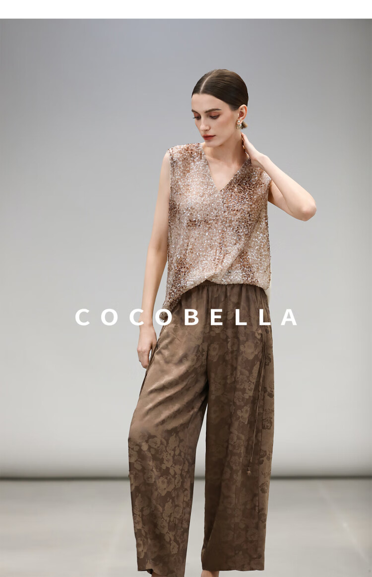 COCOBELLA重工渐变亮片绣花背心春夏轻奢风可外穿吊带VT0029