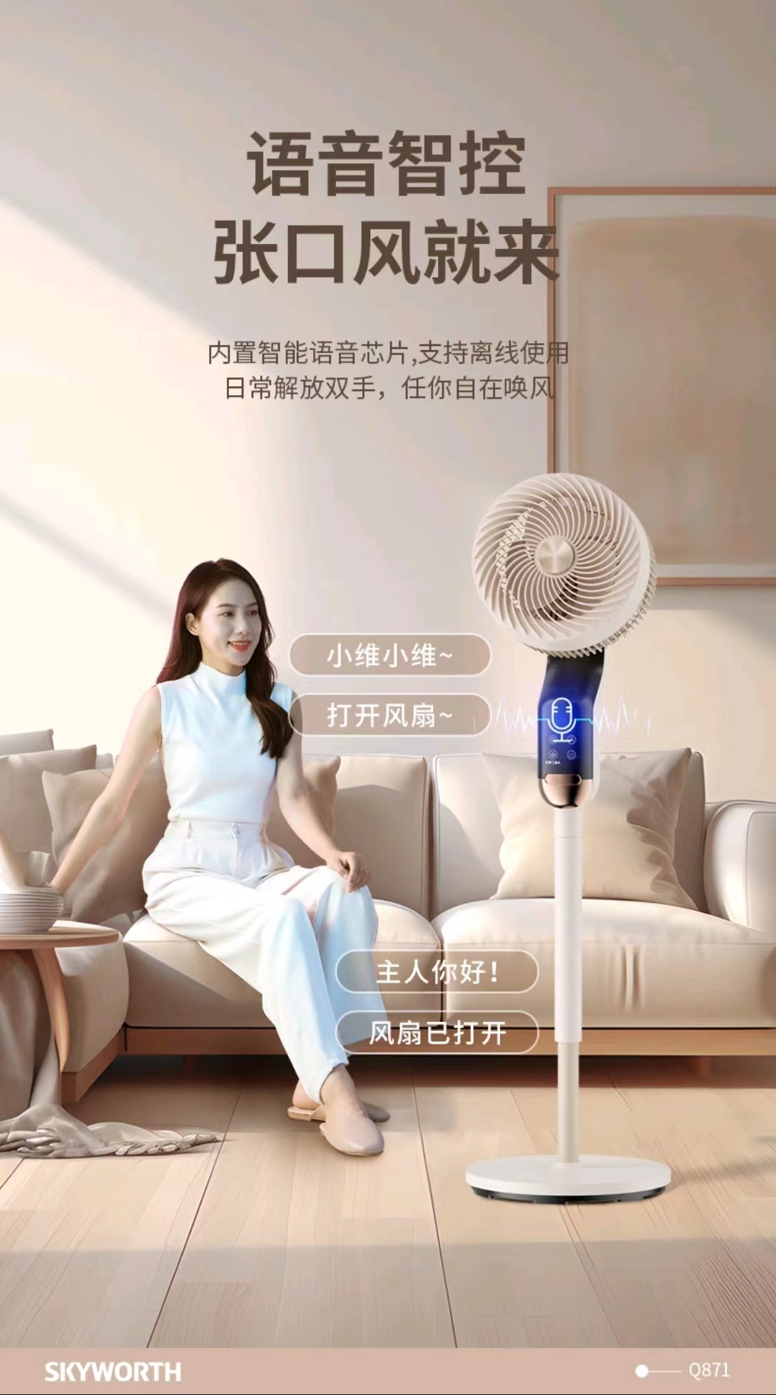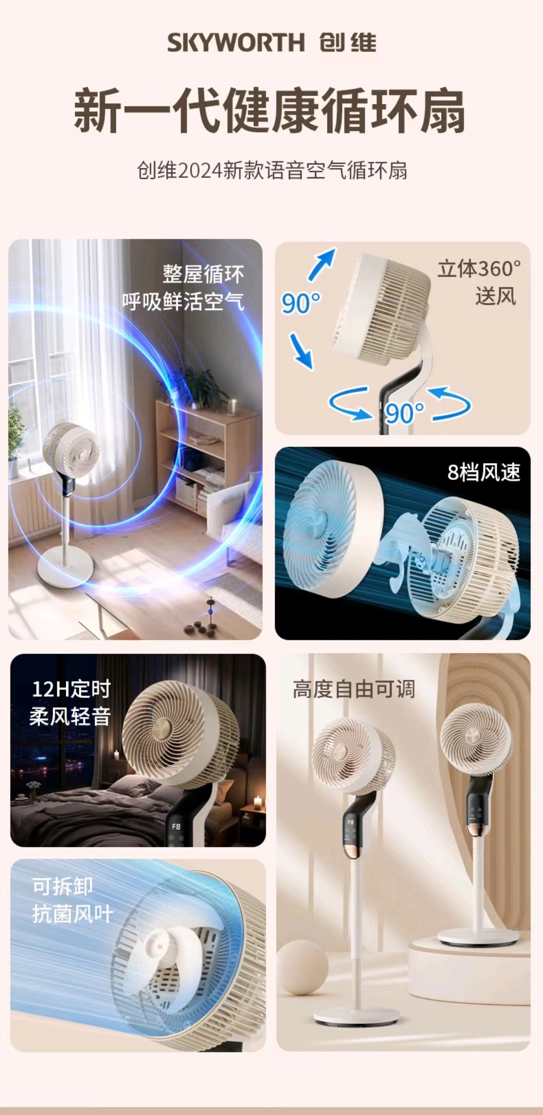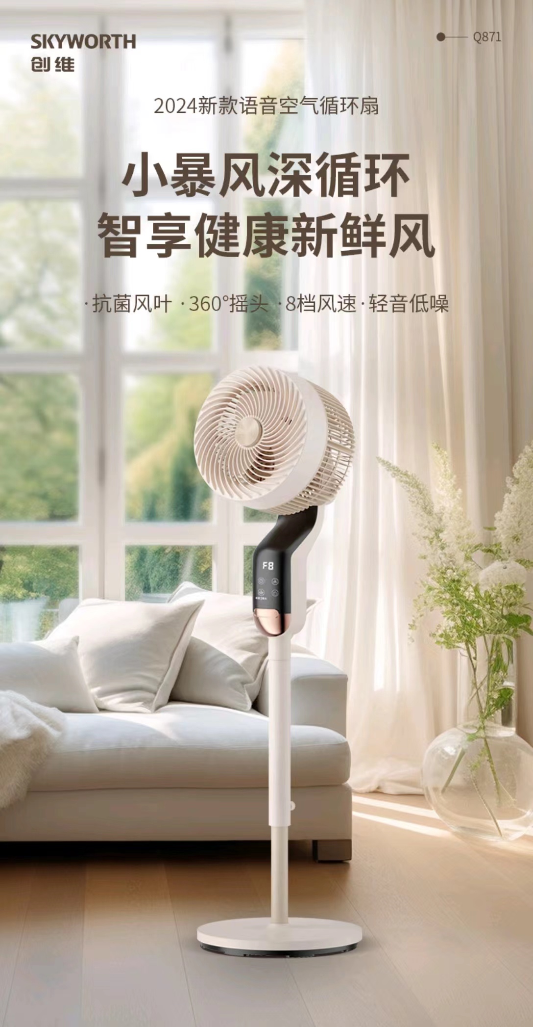 创维(Skyworth)2024新款空气循环扇语音遥控家用电风扇宿舍立式风扇大风力8D自动摇头轻音落地扇Q871