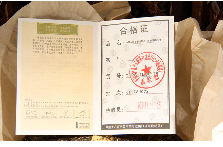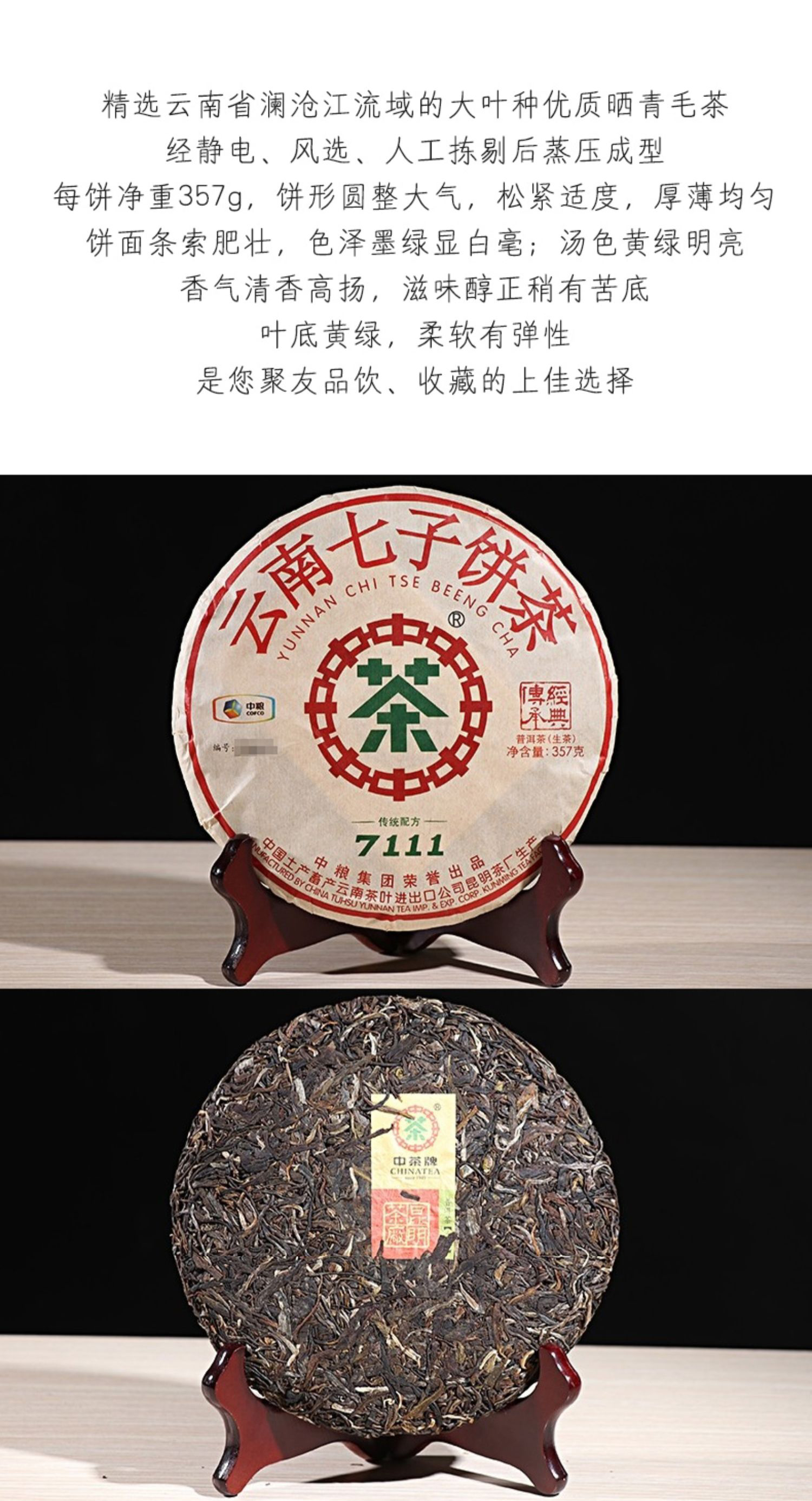 中粮-中茶2017年7111云南普洱茶生茶饼茶357g/饼/ 云南干仓直发