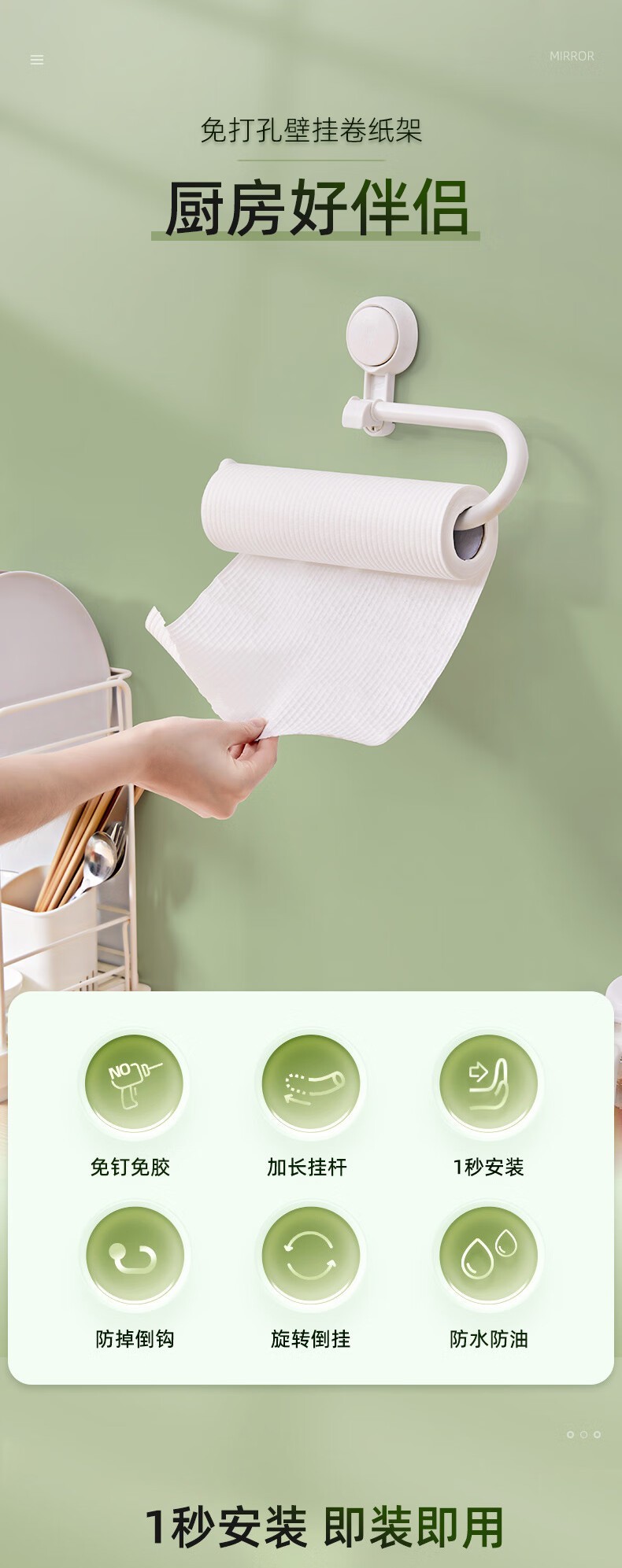太力多功能厨房纸巾架 AW630 免打孔纸巾架置物架