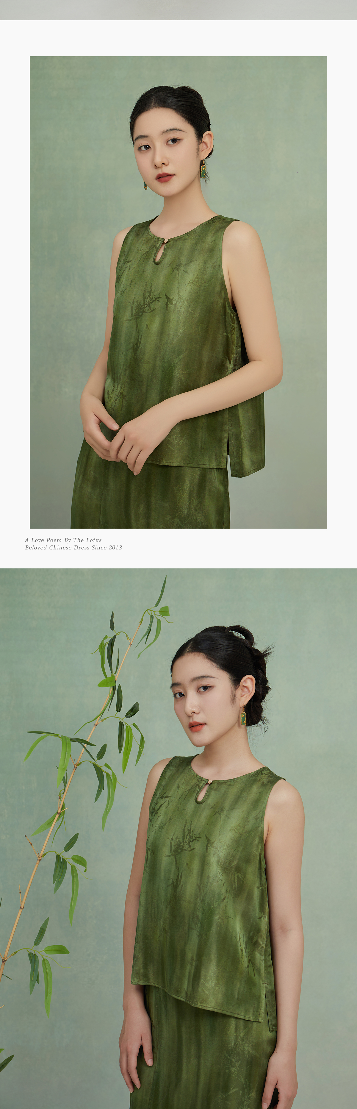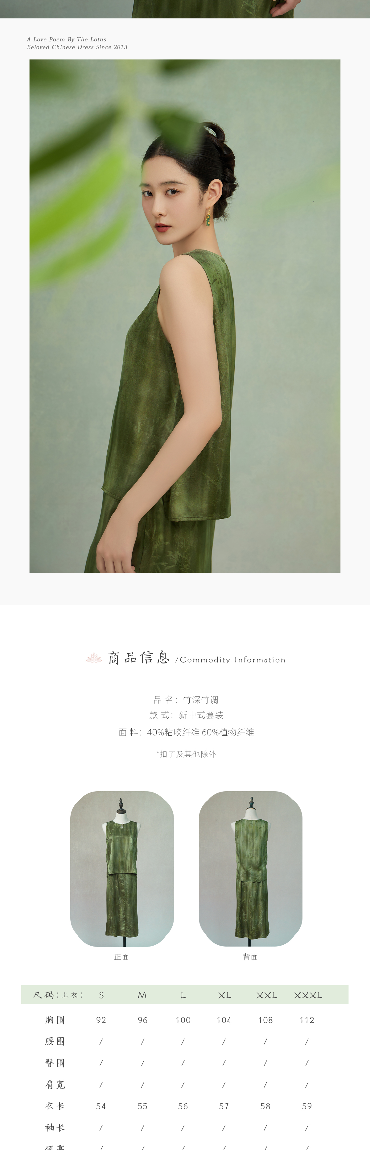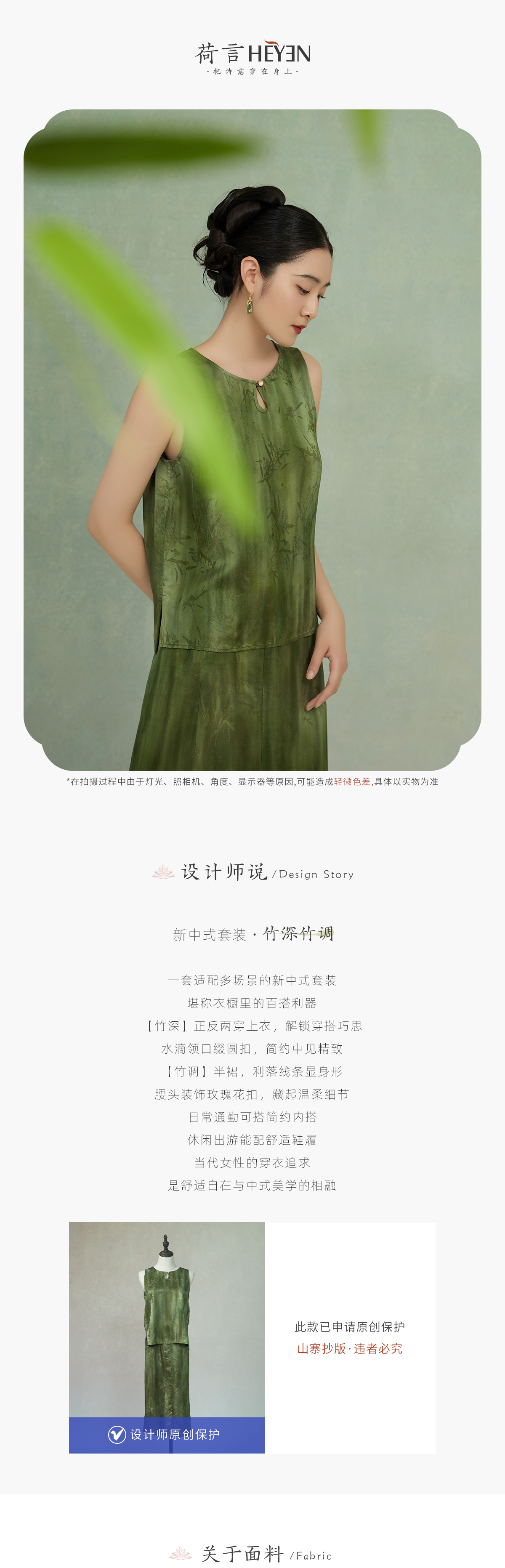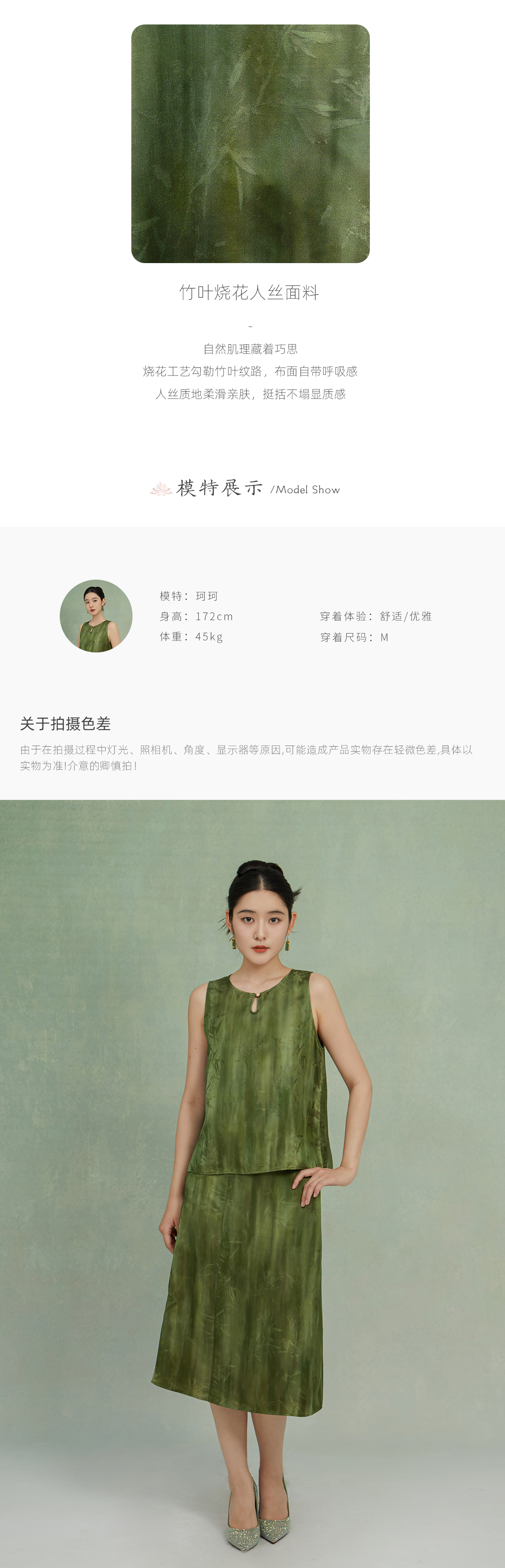 荷言GL 竹深竹调 竹叶烧花人丝新中式套装 亲肤舒适 正反两穿上衣+百搭半裙