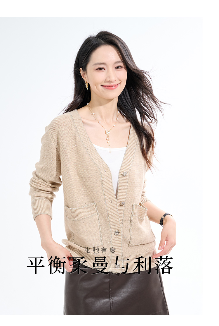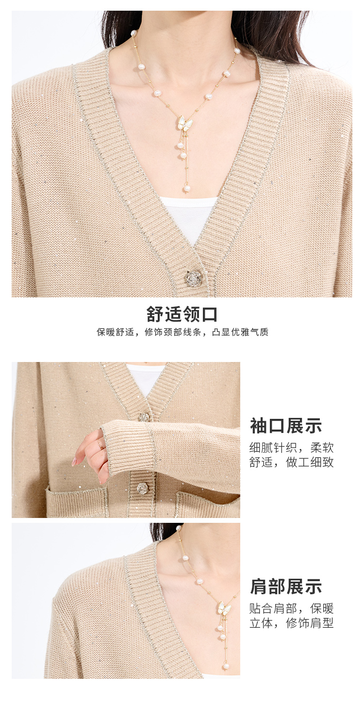 罗蒙秋冬针织衫女士开衫纽扣V领长袖气质显瘦百搭配裙子外搭毛衣外套女