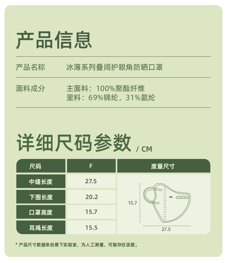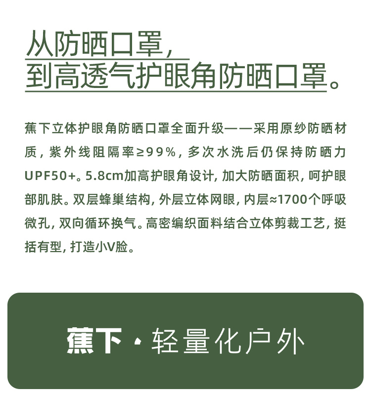 蕉下新款冰薄系列叠阔护眼角防晒口罩