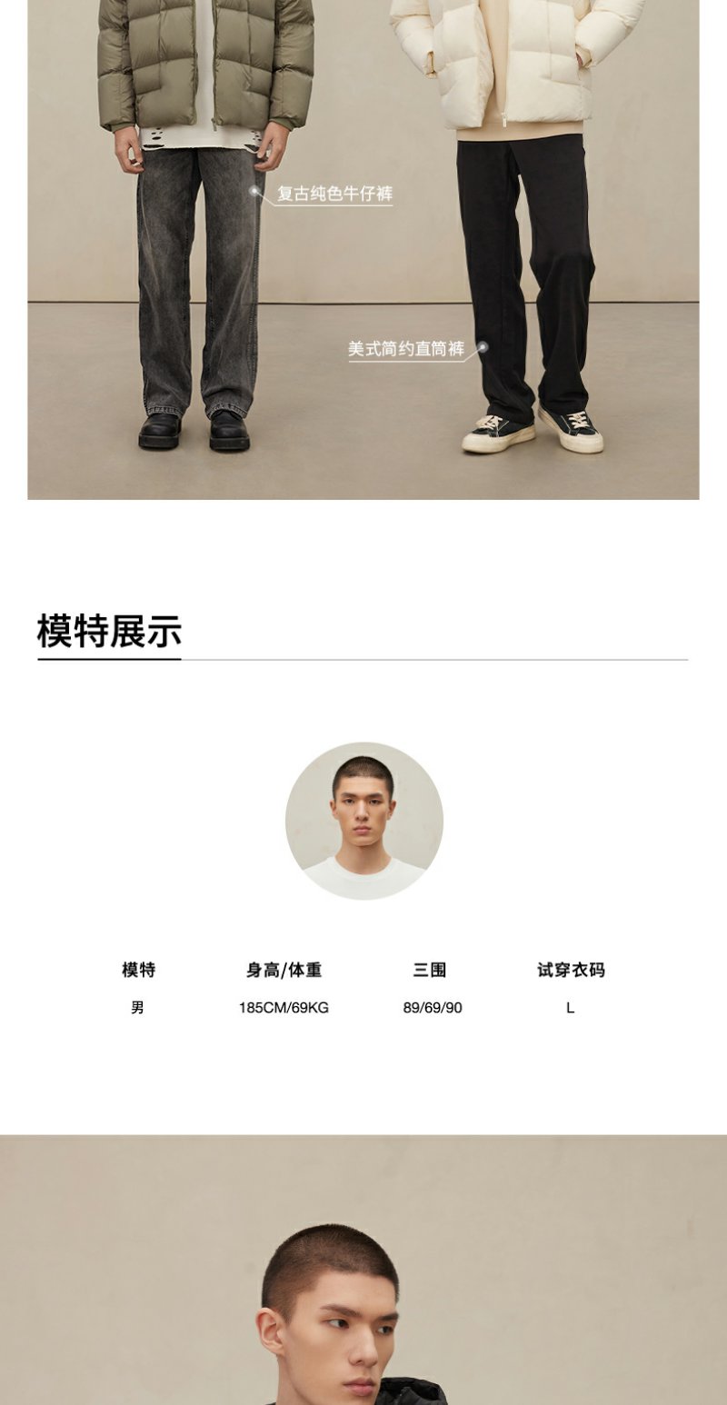 CHINISM赤尘 可拆卸连帽羽绒服男冬季男士防风加厚短款面包服外套