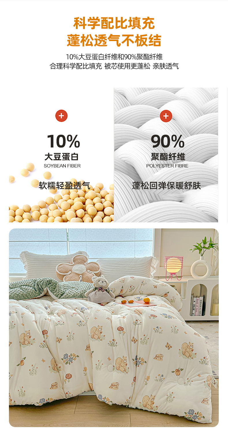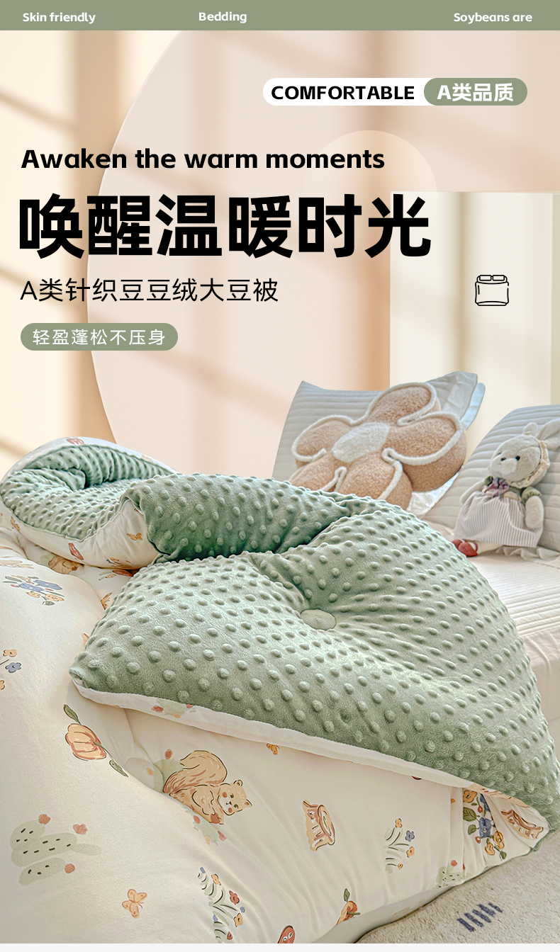 【热卖推荐】自然醒A类婴儿级针织棉豆豆绒大豆被冬被子被芯单人春秋被褥四季通用YBY