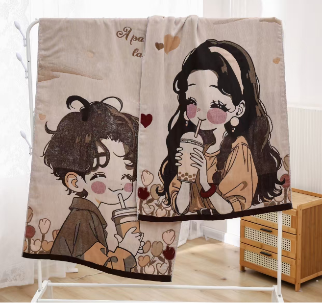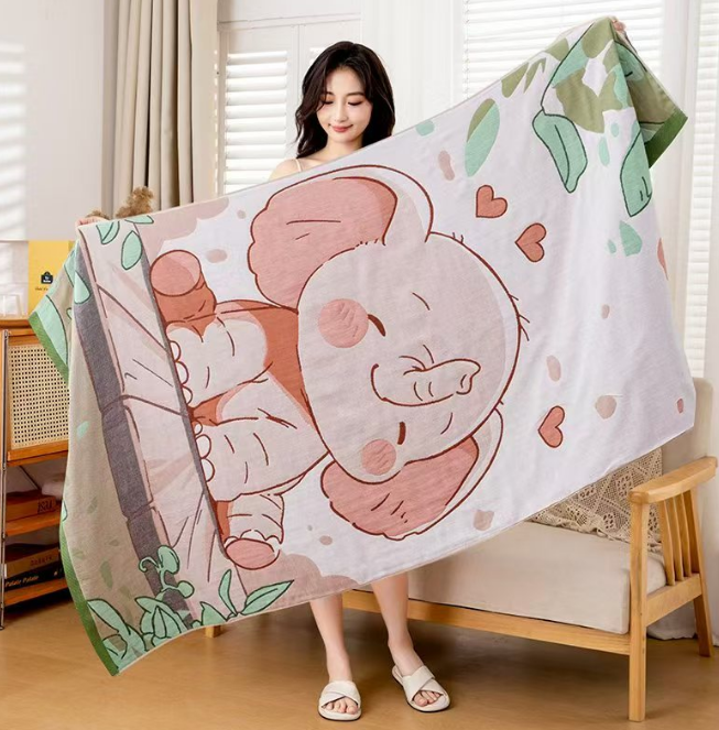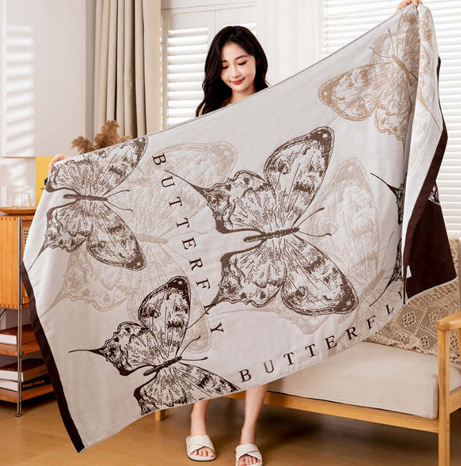 【2条装加大浴巾69.9元】自然醒水洗棉四层纱布提花浴巾柔软亲肤家用吸水速干不易掉毛宝宝裹巾WDF