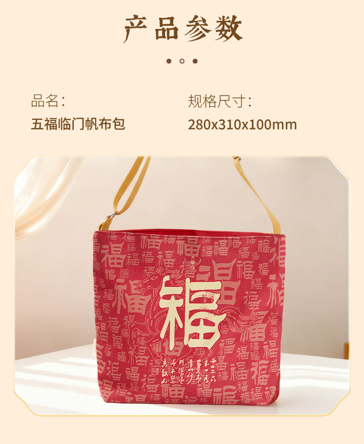 牛首山文创五福临门帆布包2026新年礼物南京纪念品斜挎包手提包
