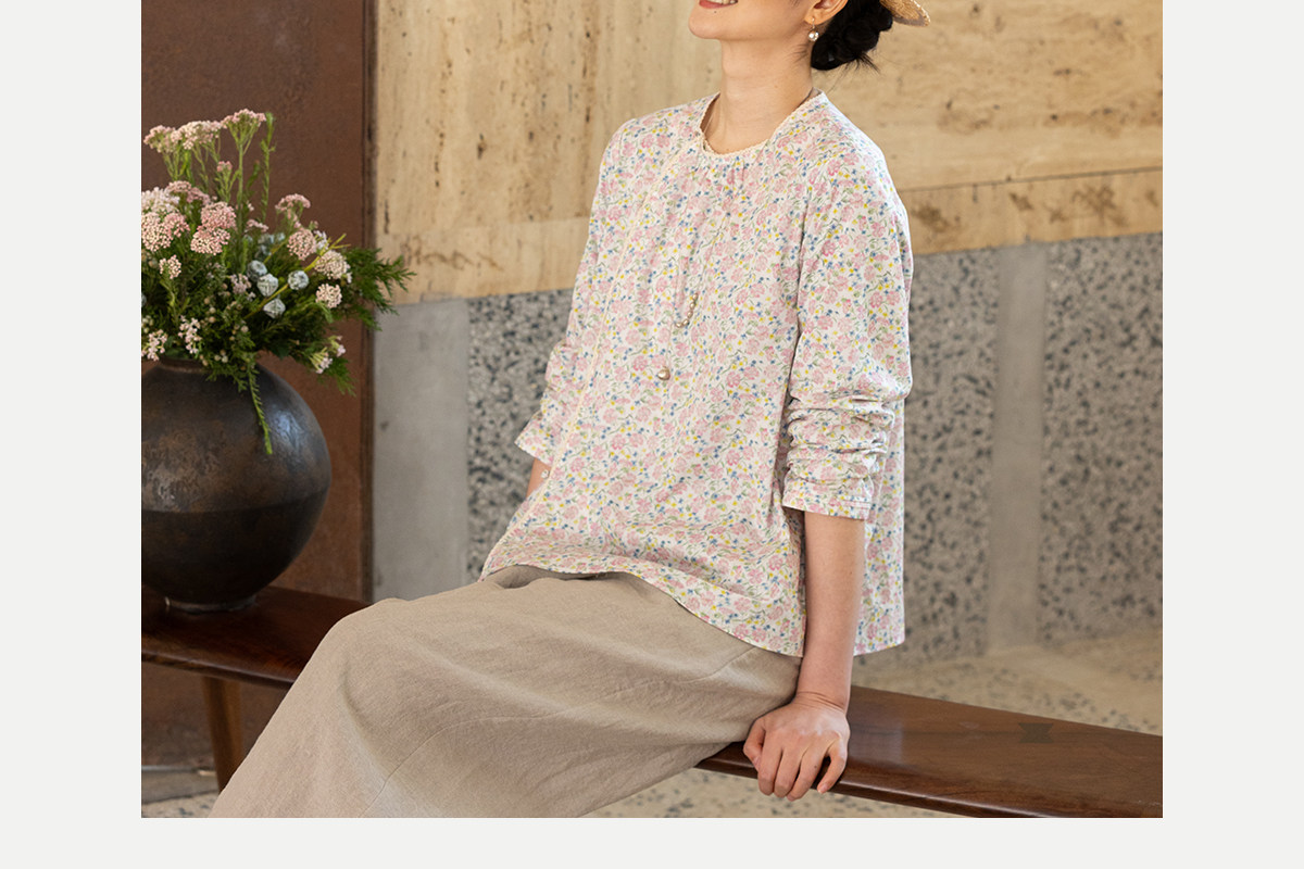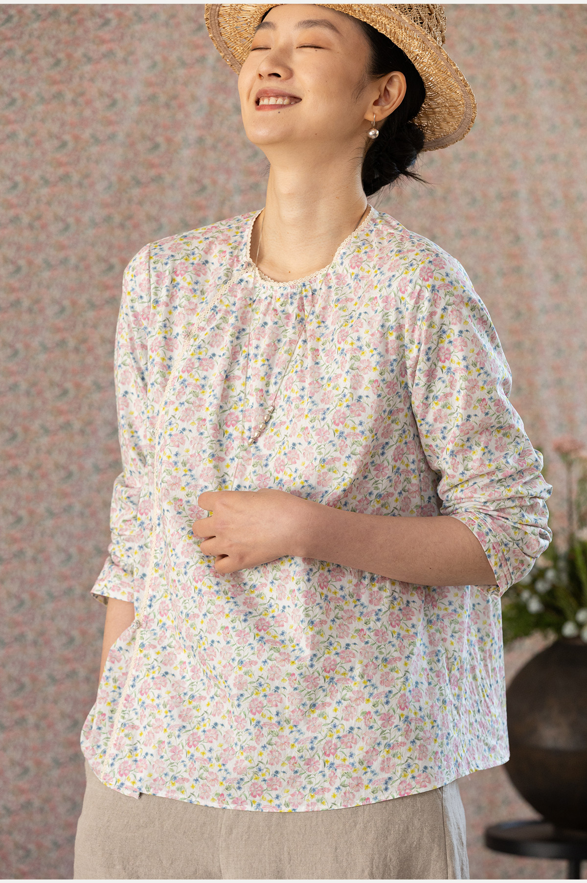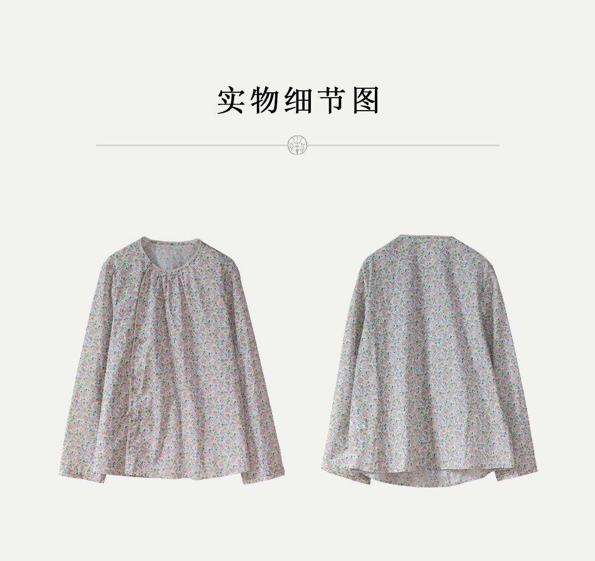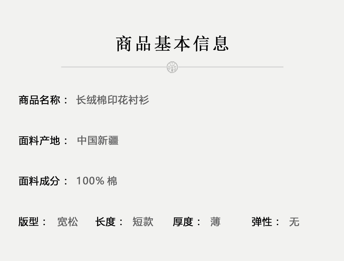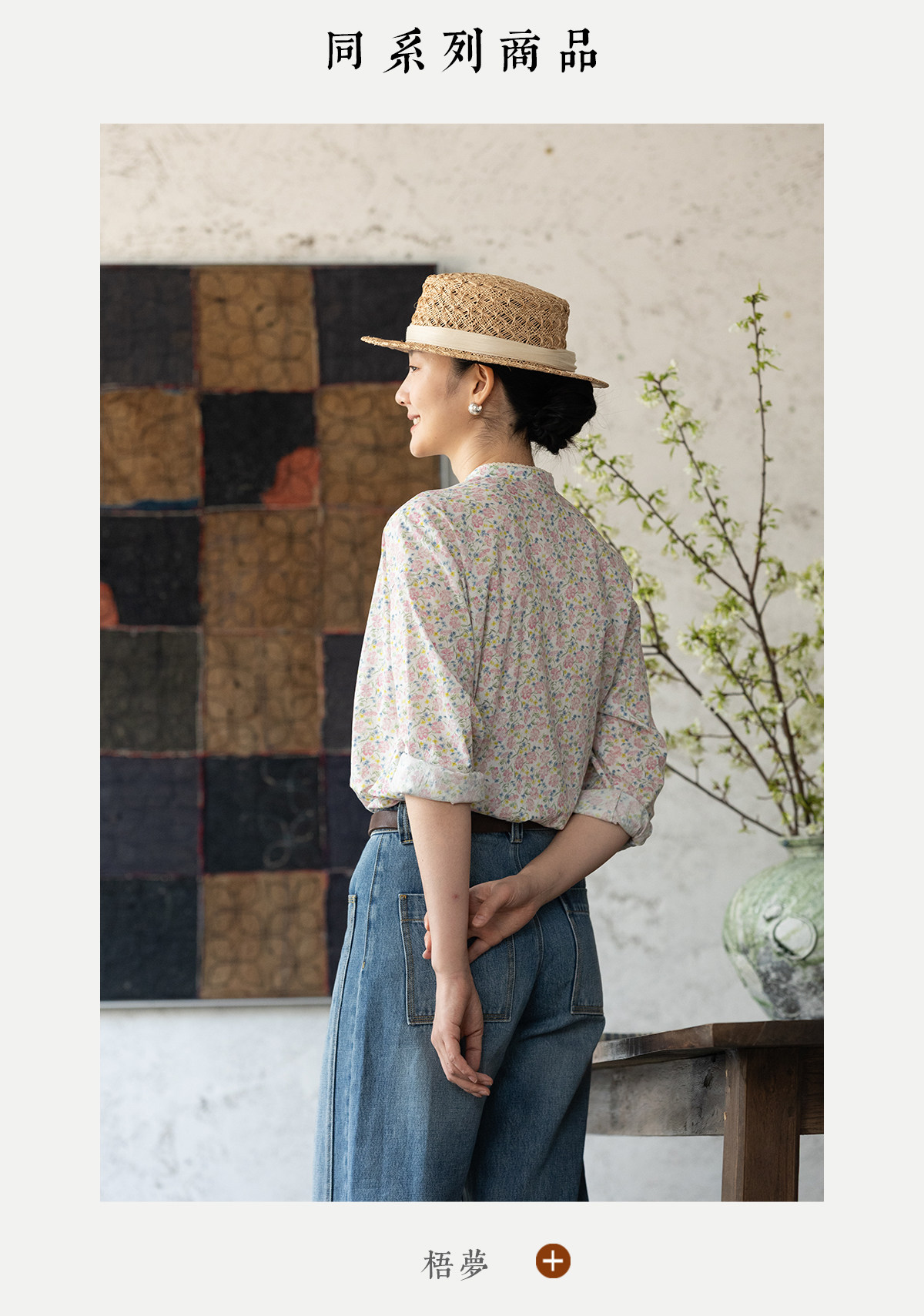 牧衣游原创 80支新疆长绒棉印花衬衫春季新款素雅文艺衬衣 禾稻