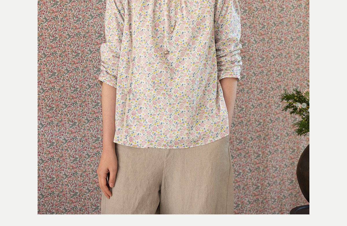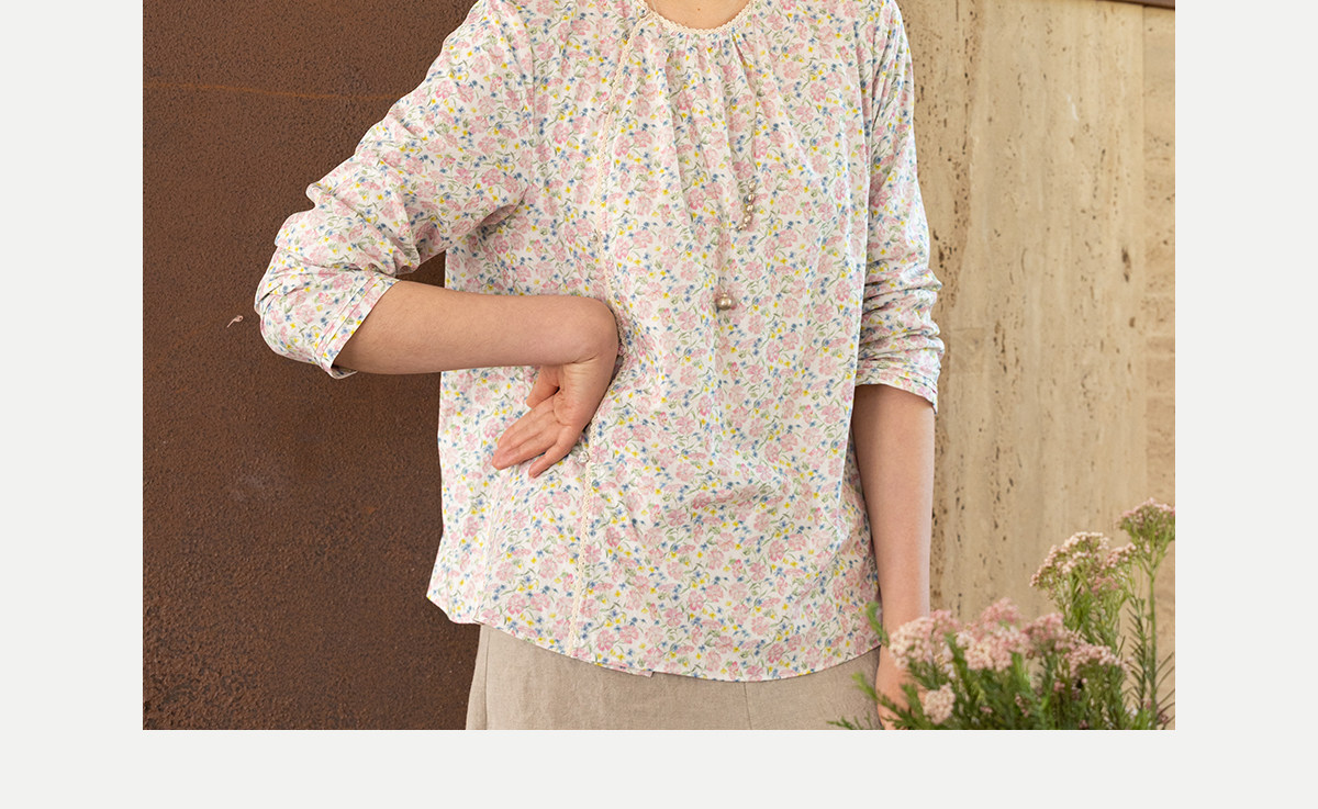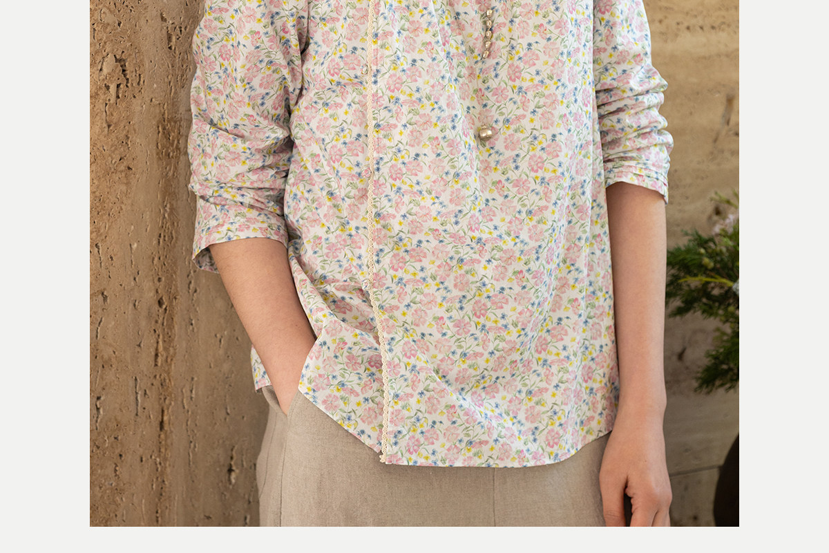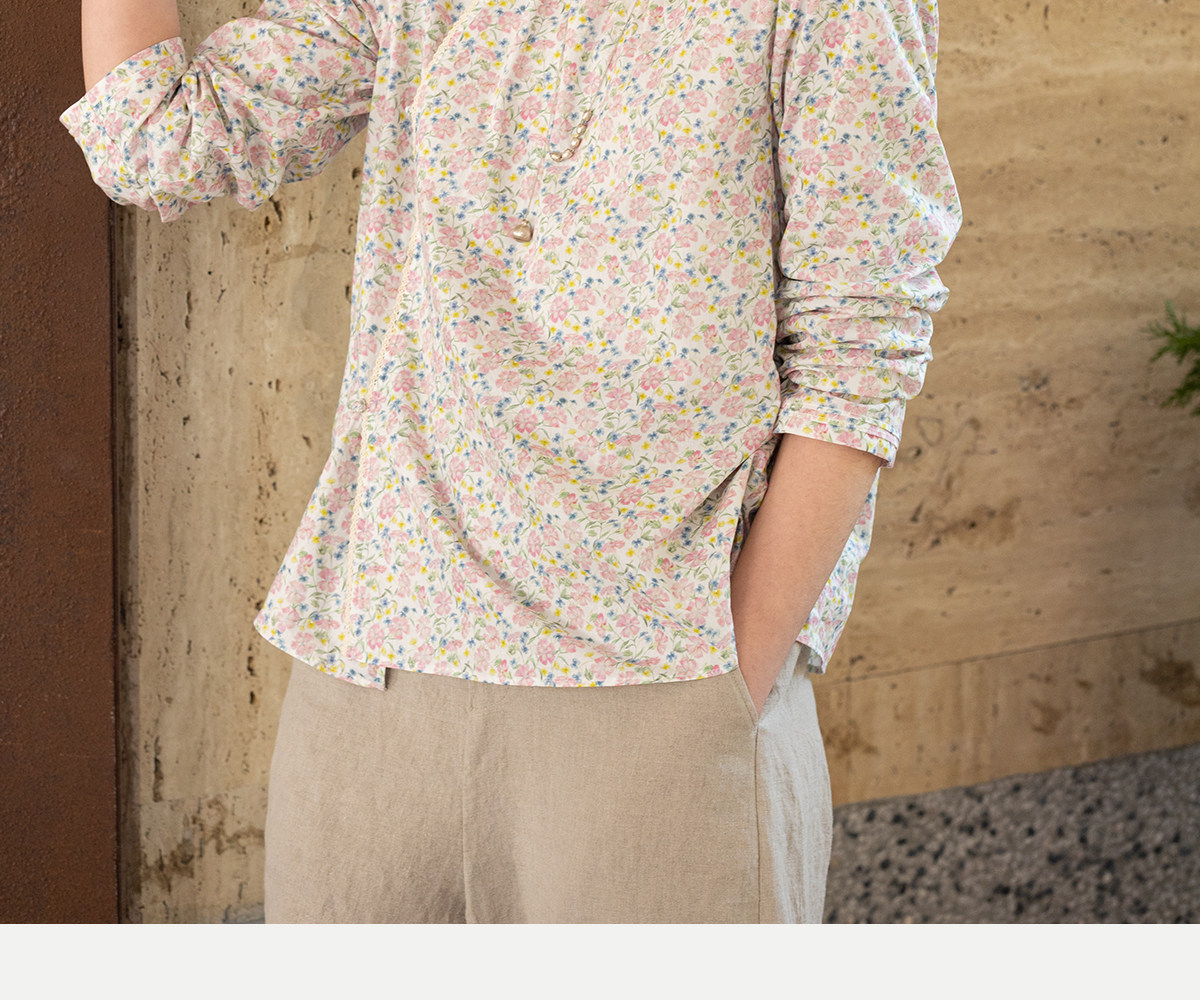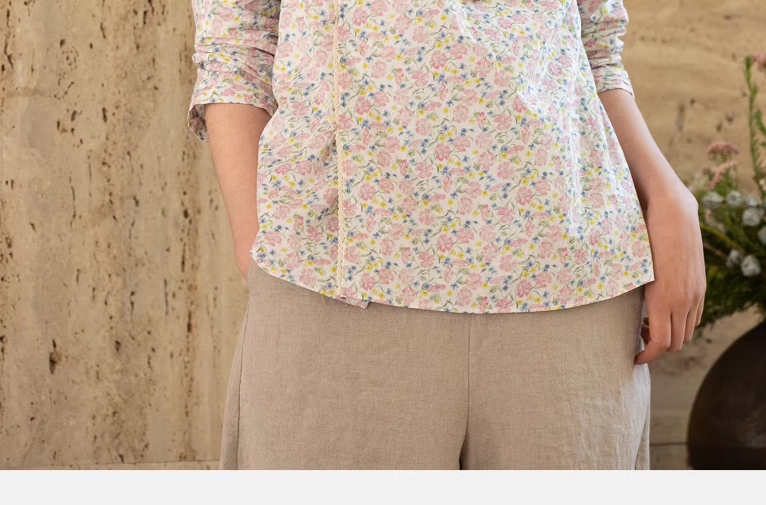 牧衣游原创 80支新疆长绒棉印花衬衫春季新款素雅文艺衬衣 禾稻