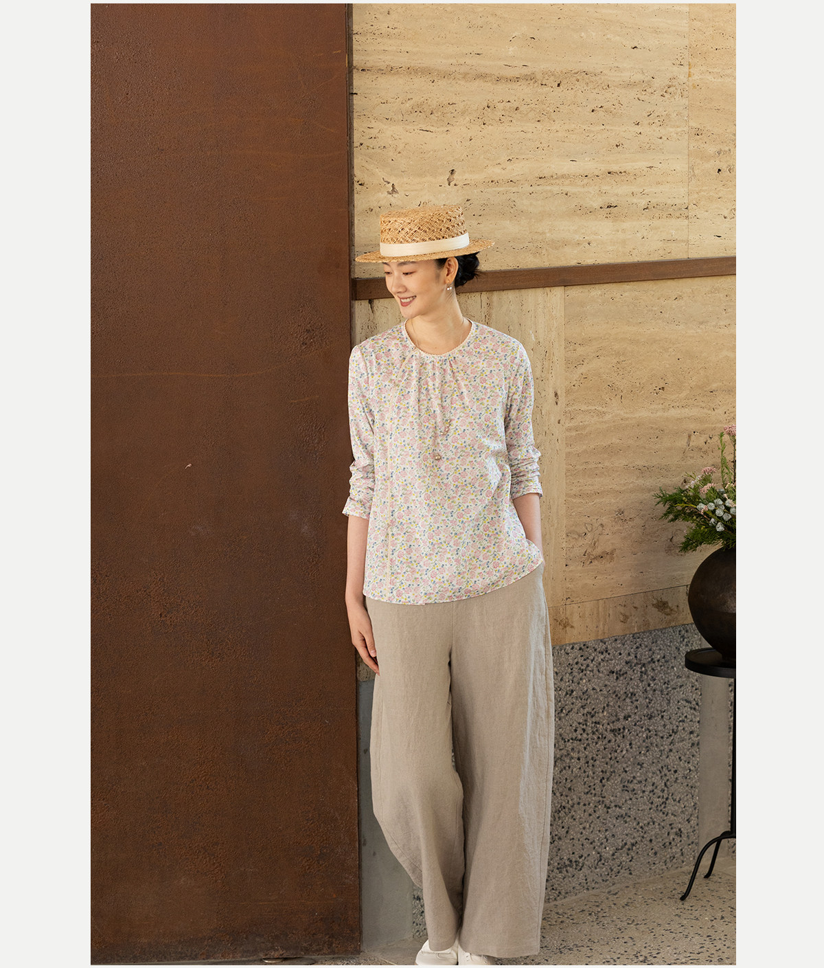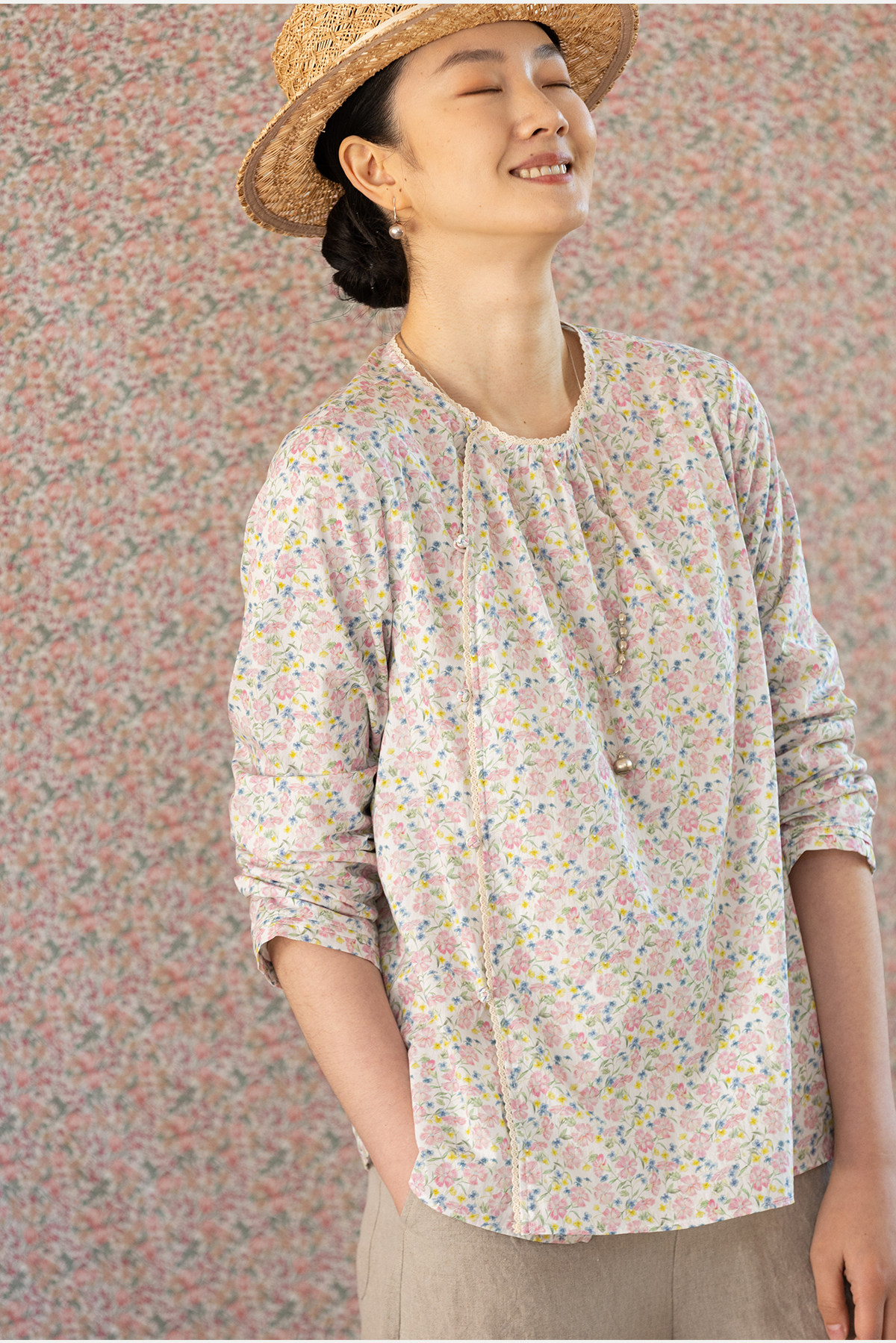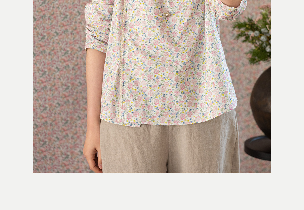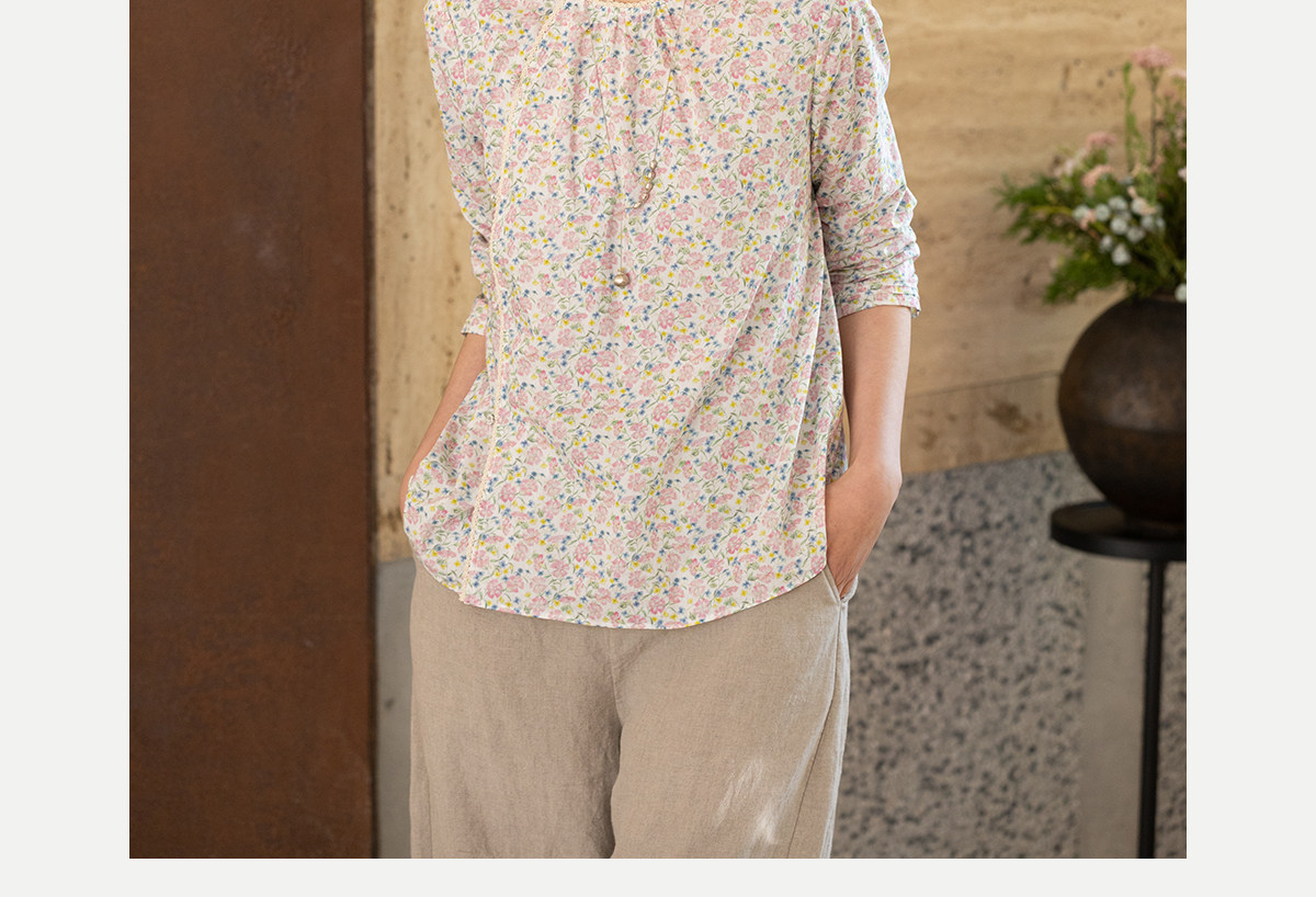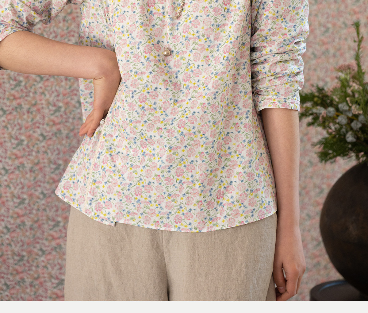 牧衣游原创 80支新疆长绒棉印花衬衫春季新款素雅文艺衬衣 禾稻