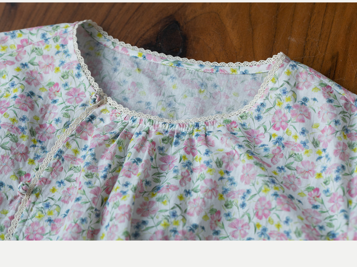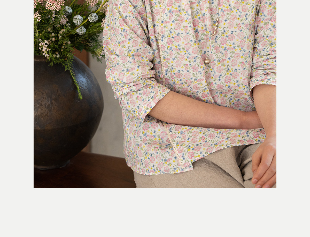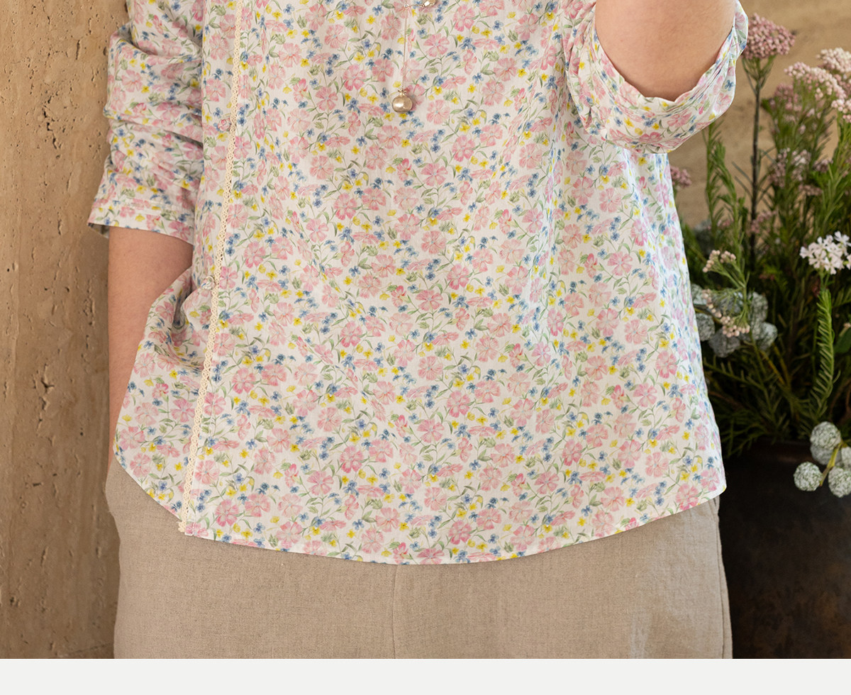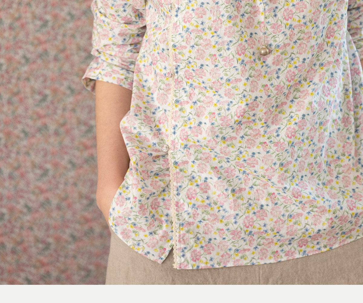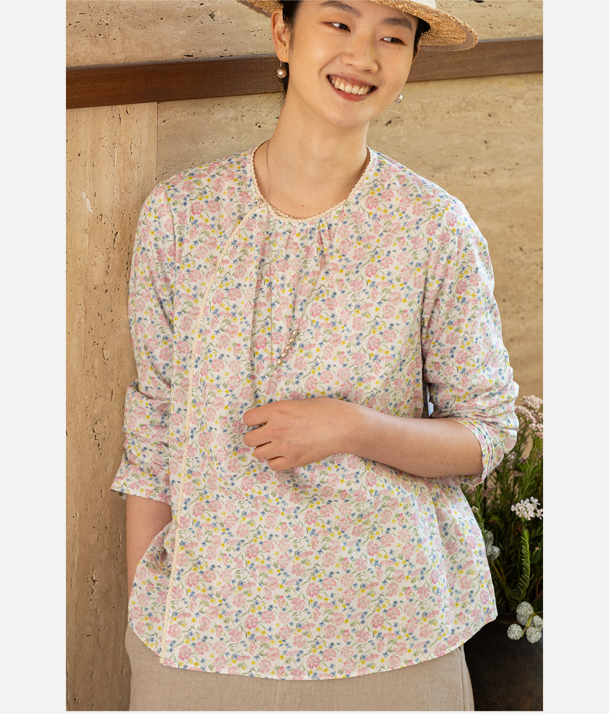 牧衣游原创 80支新疆长绒棉印花衬衫春季新款素雅文艺衬衣 禾稻