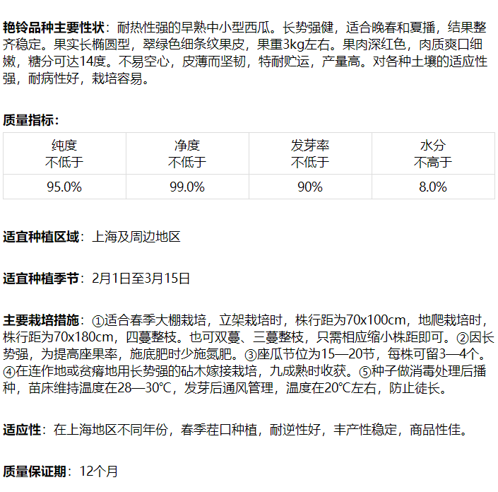 [专业种子] "艳铃"西瓜种子