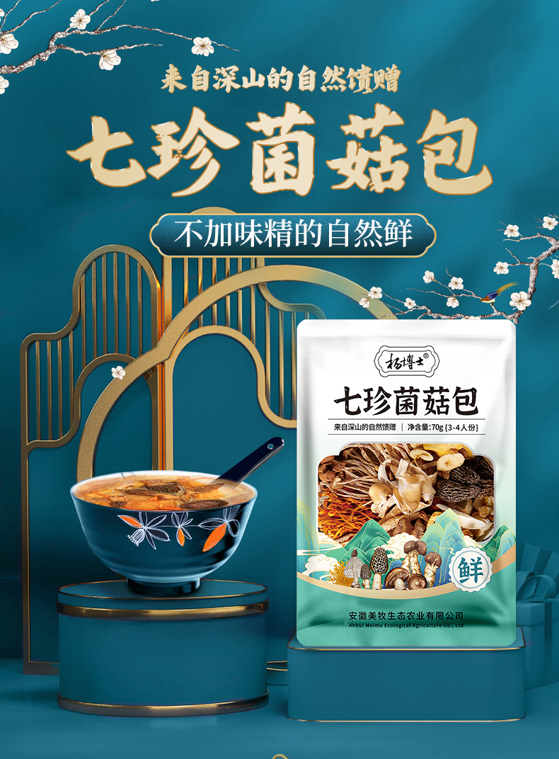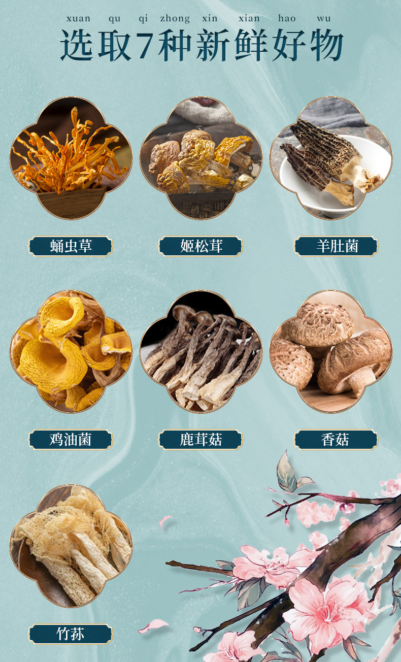【杨博士】七珍菌菇包 70g安徽特产干货菌汤包蛹虫草 鹿茸菇 香菇 竹荪 姬松茸 羊肚菌 鸡油菌