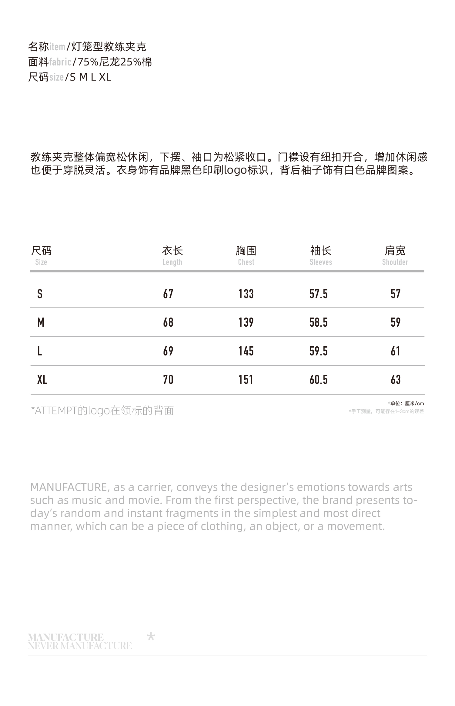 MANUFACTURE BY ATTEMPT 灯笼型教练夹克