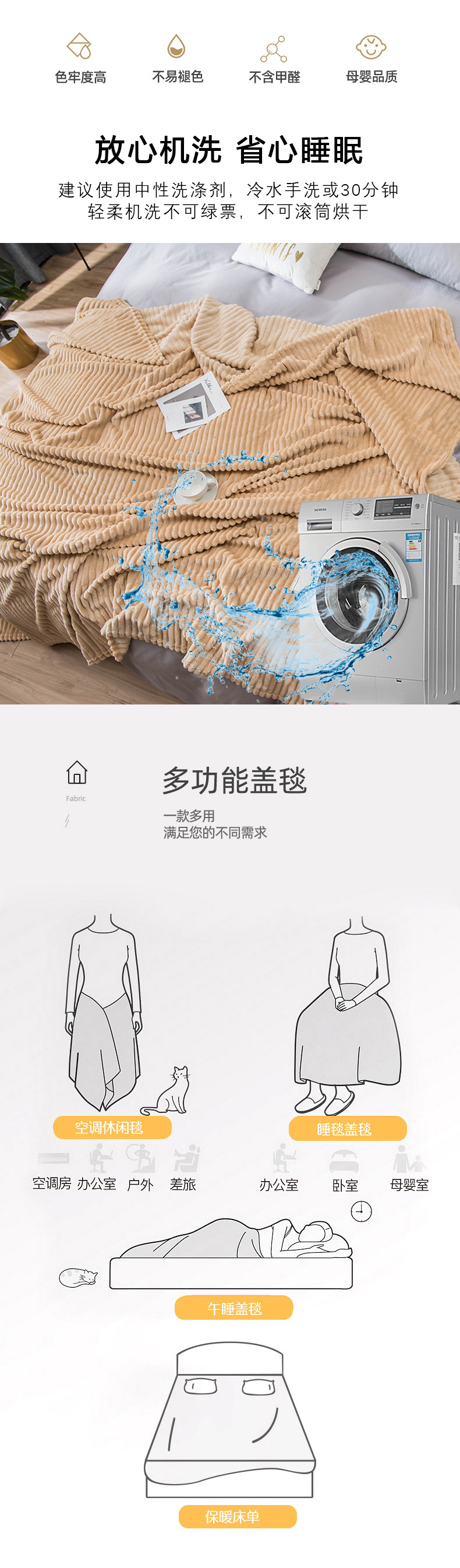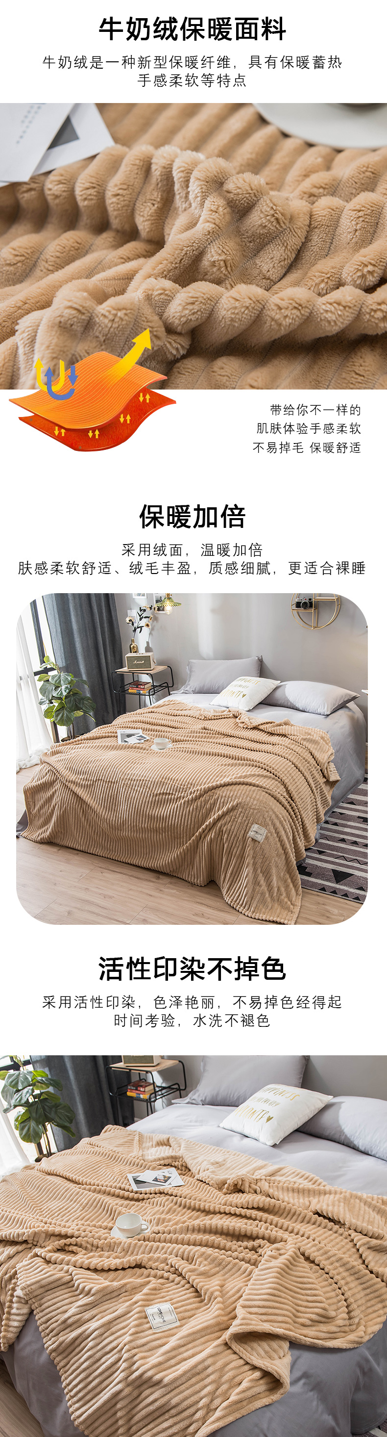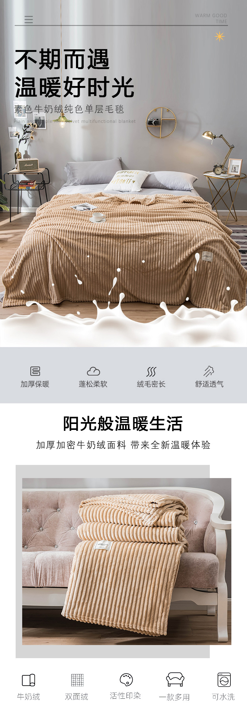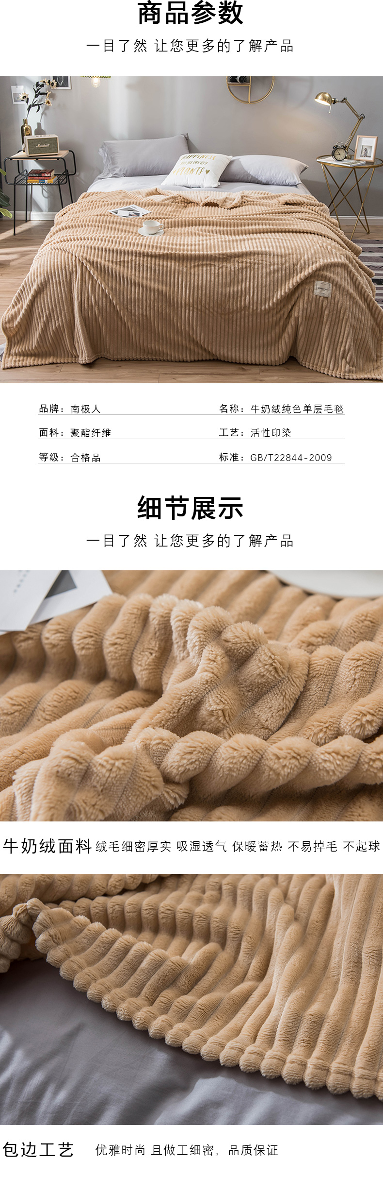 南极人牛奶绒纯色单层毛毯 200*230cm 卡其灰