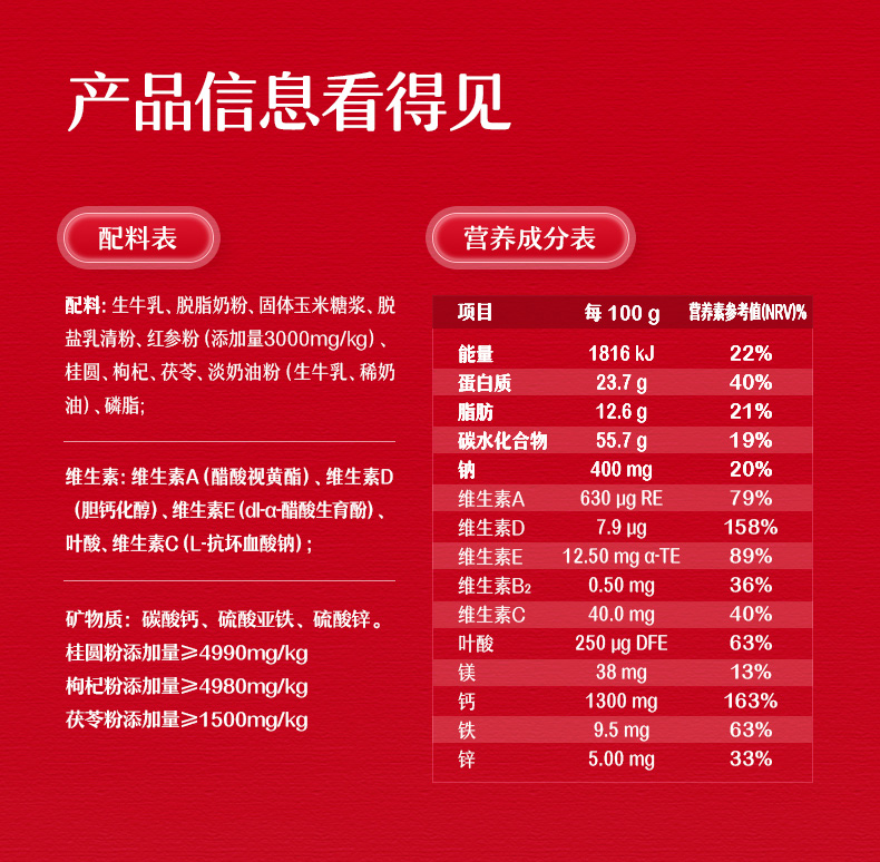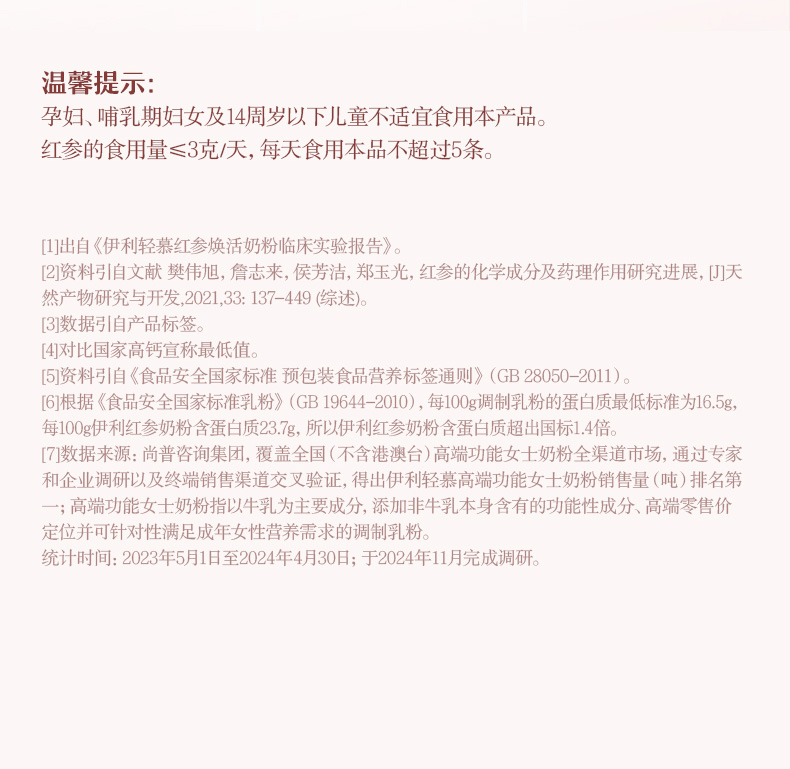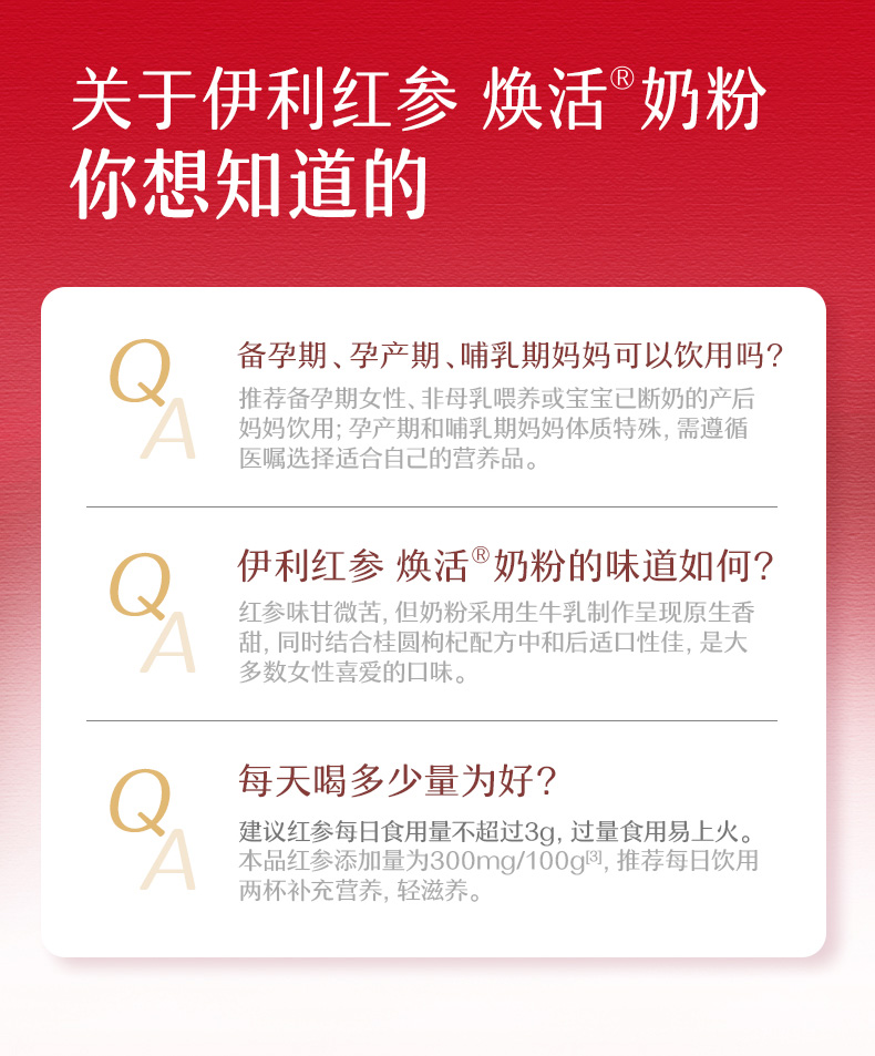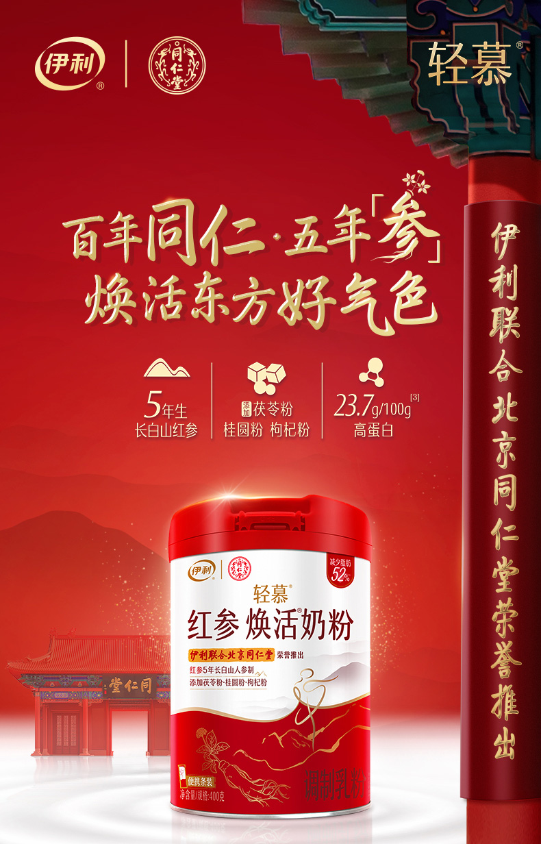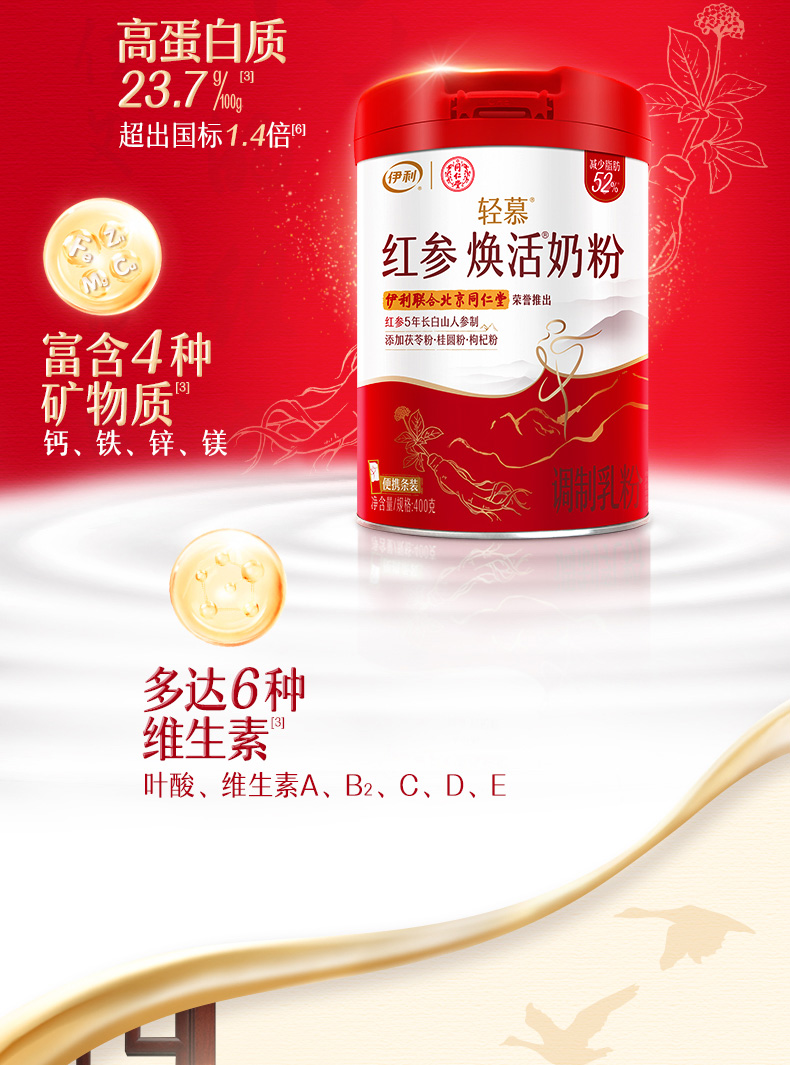 【6罐特惠】伊利轻慕红参焕活奶粉400g*6罐 “参”入肌底 美出东方好气色 高铁高钙高蛋白