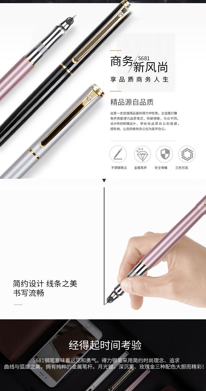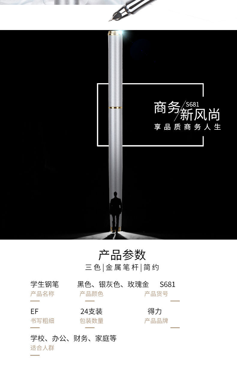 【小学生练字钢笔】得力金属钢笔EF暗尖 学生用 男生女生练字 书写钢笔 金属儿童钢笔S681
