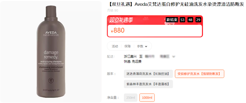 【品名】AVEDA艾梵达蛋白修护无硅油洗发露1000ml