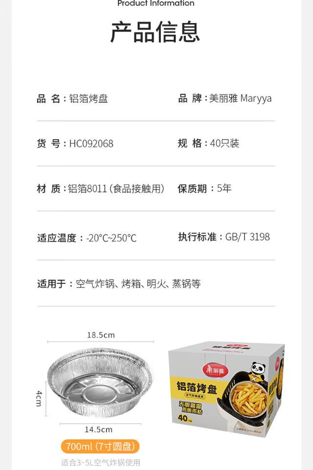美丽雅空气炸锅铝箔盘10只入