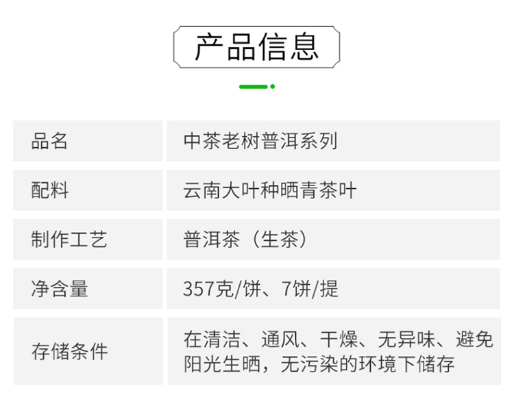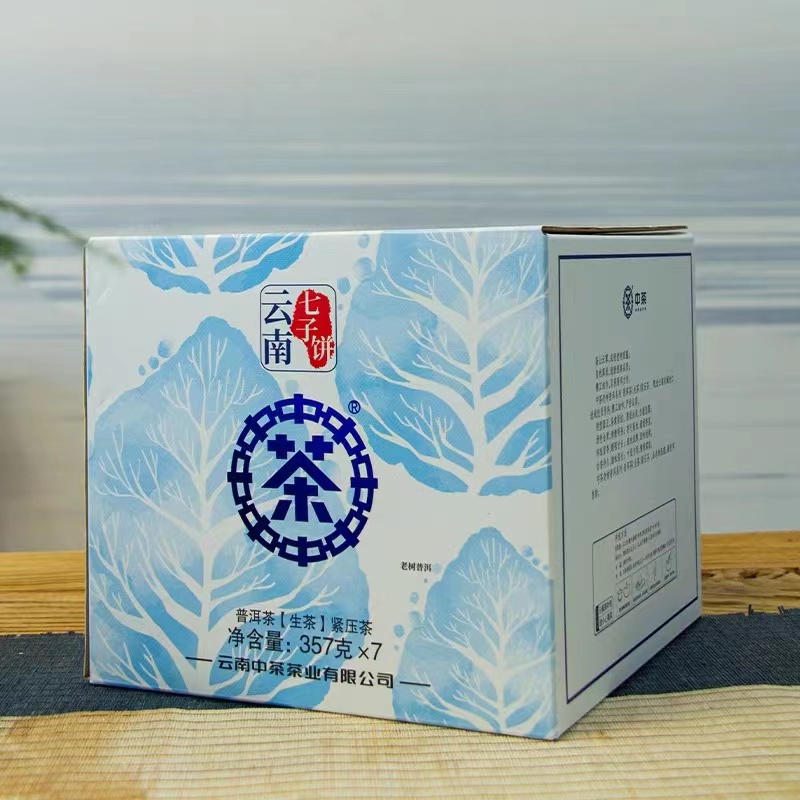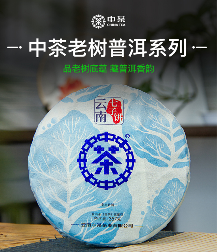 中粮-中茶2023年中茶老树普洱系列 树叶底纹蓝普洱生茶357g/饼/干仓直发