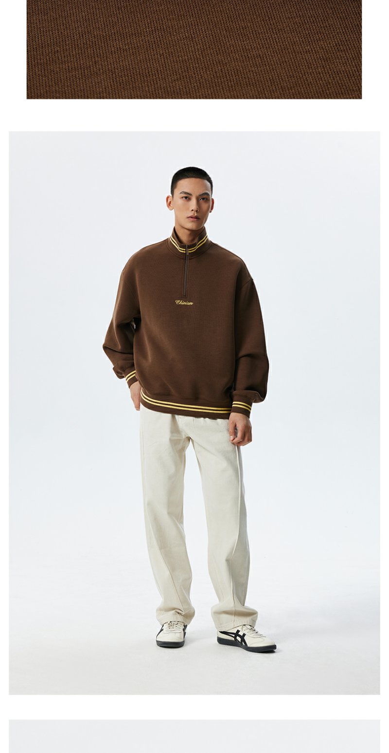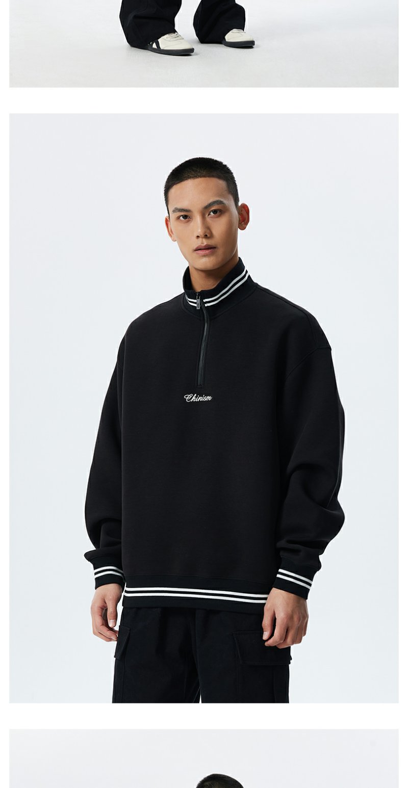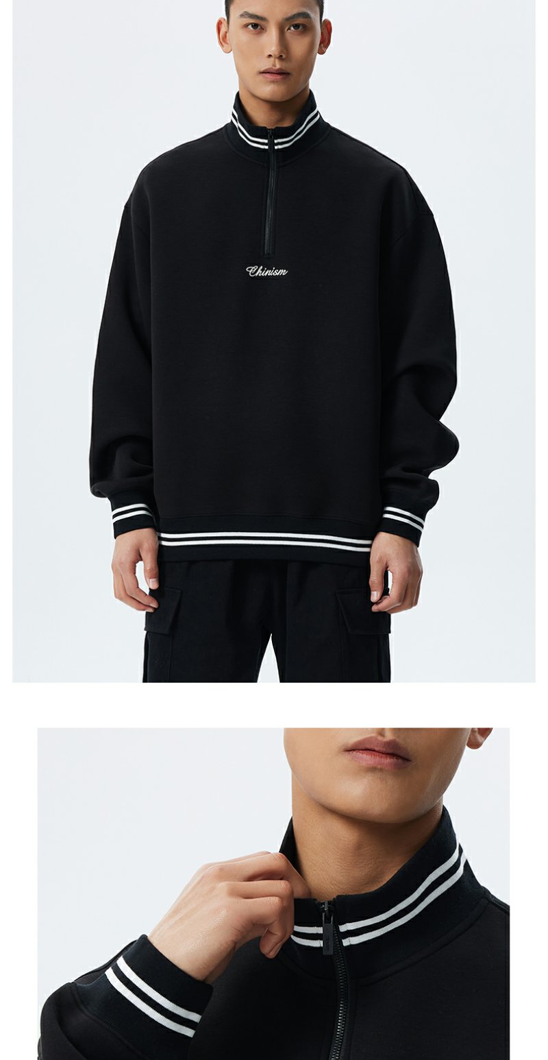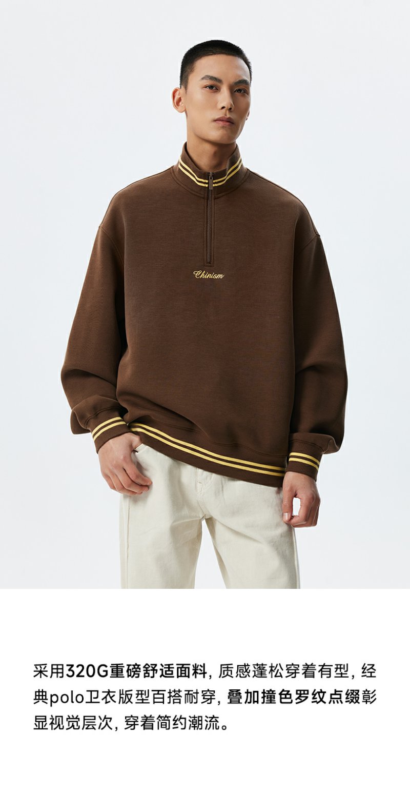 CHINISM赤尘 撞色立领polo卫衣男秋季新款空气层半拉链运动上衣 商品图0