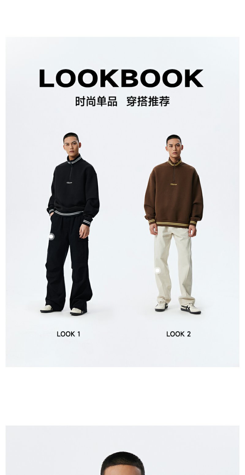 CHINISM赤尘 撞色立领polo卫衣男秋季新款空气层半拉链运动上衣 商品图4