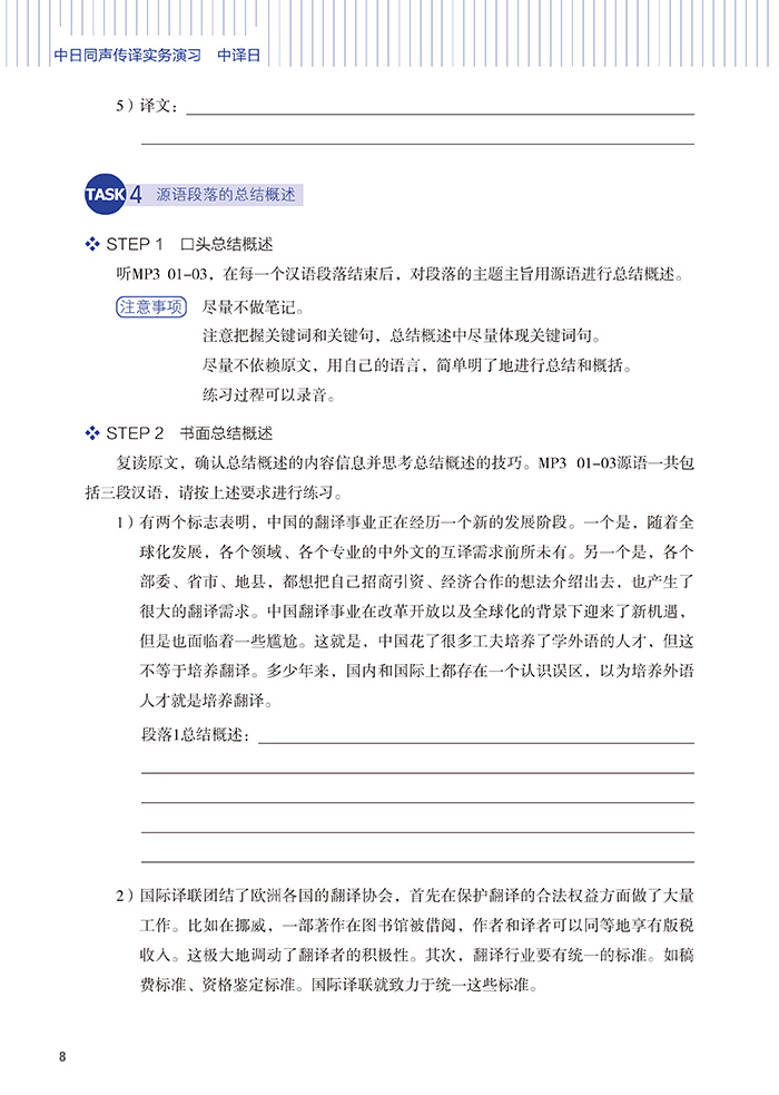 3.体育运动领域篇章演说的有笔记交传训练