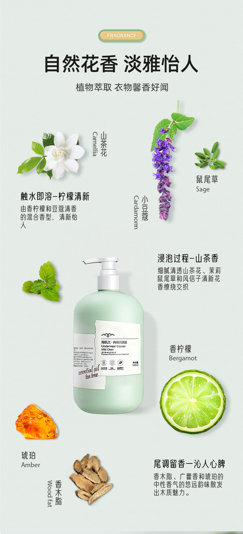 【明星单品】海肌兰内衣内裤清洗液520ml 内衣裤专用洗衣液抗抑菌去血渍孕妇衣物清洗液