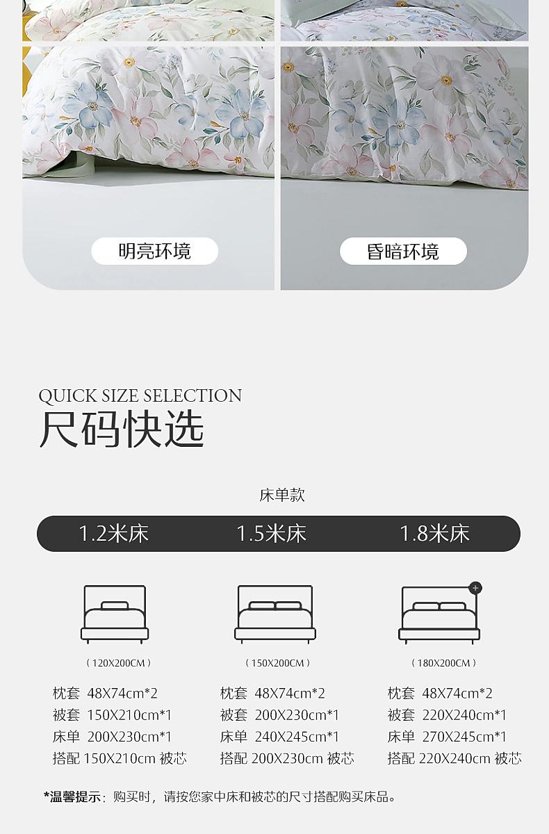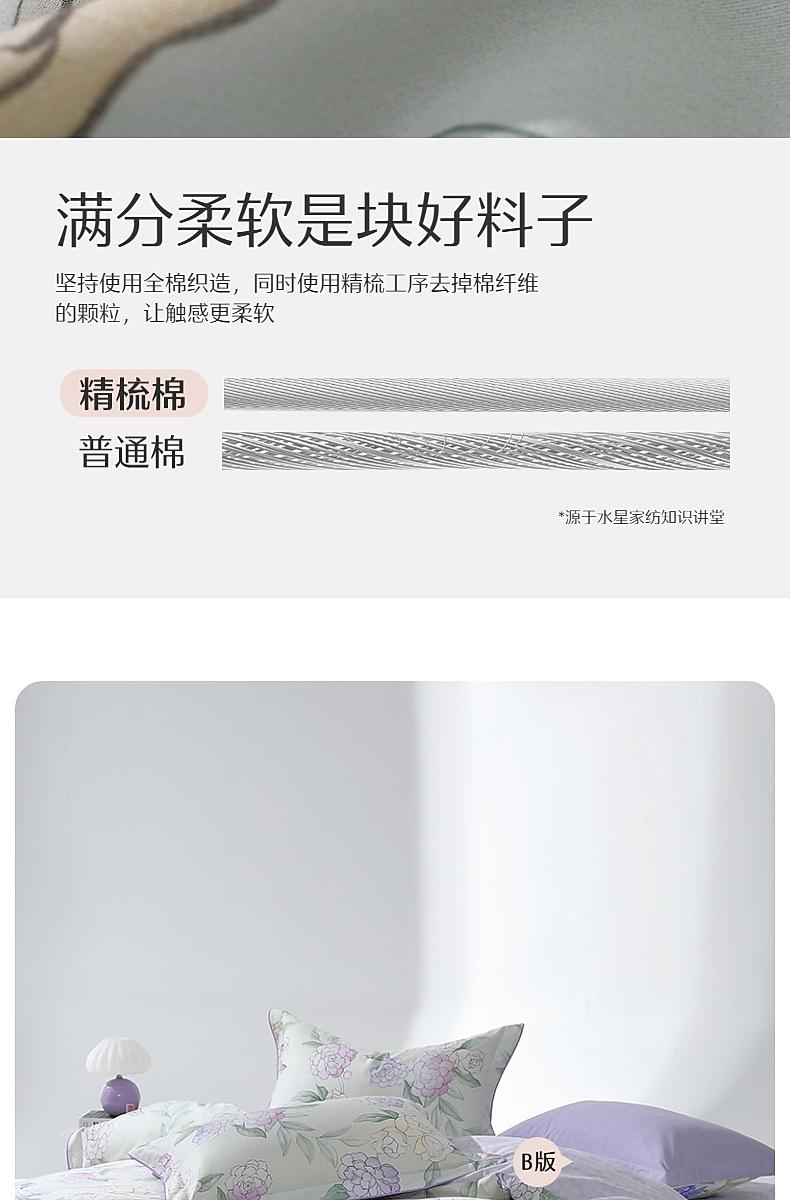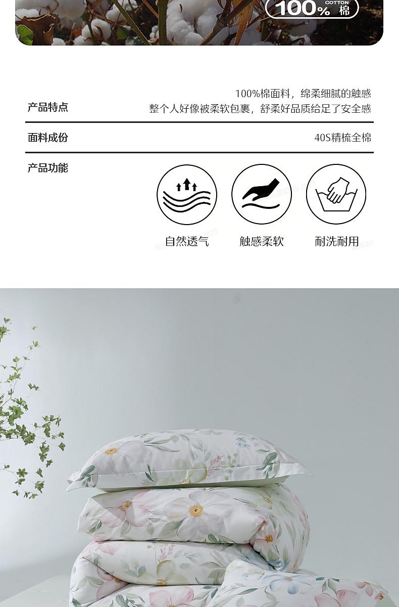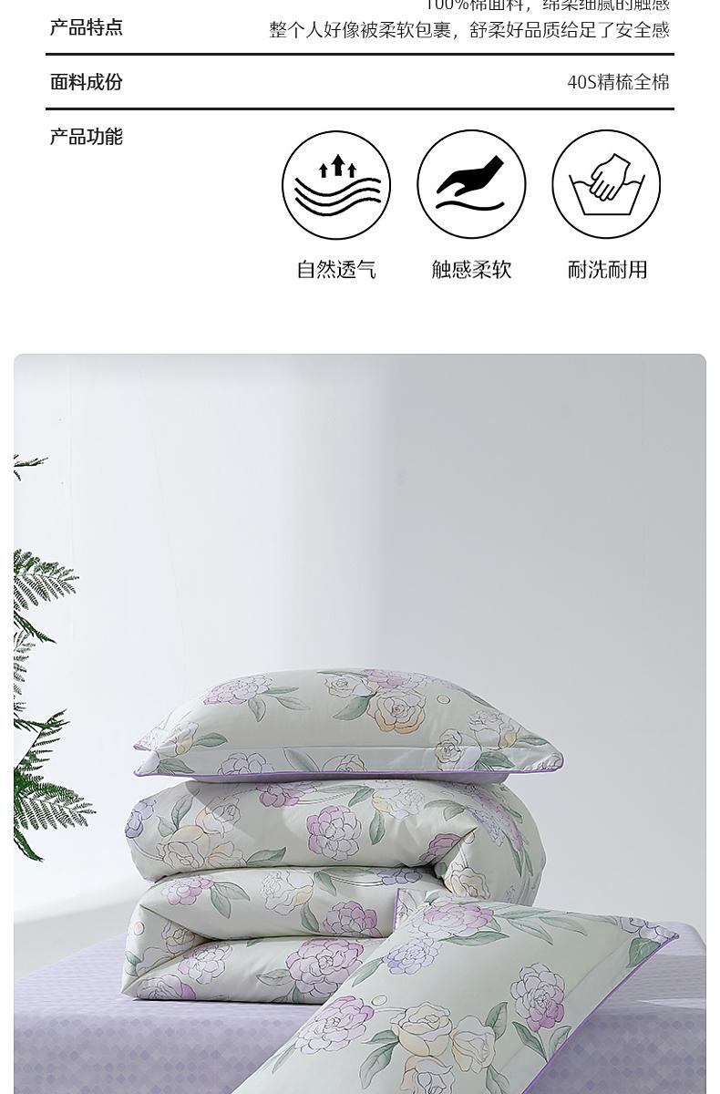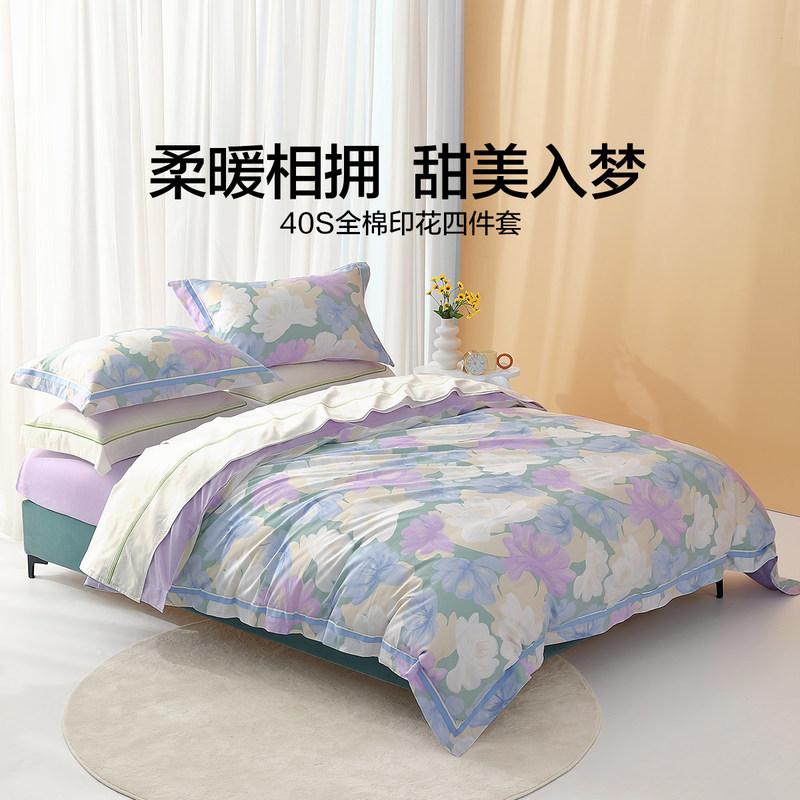 水星家纺40支全棉三/四件套纯棉印花亲肤套件床上用品