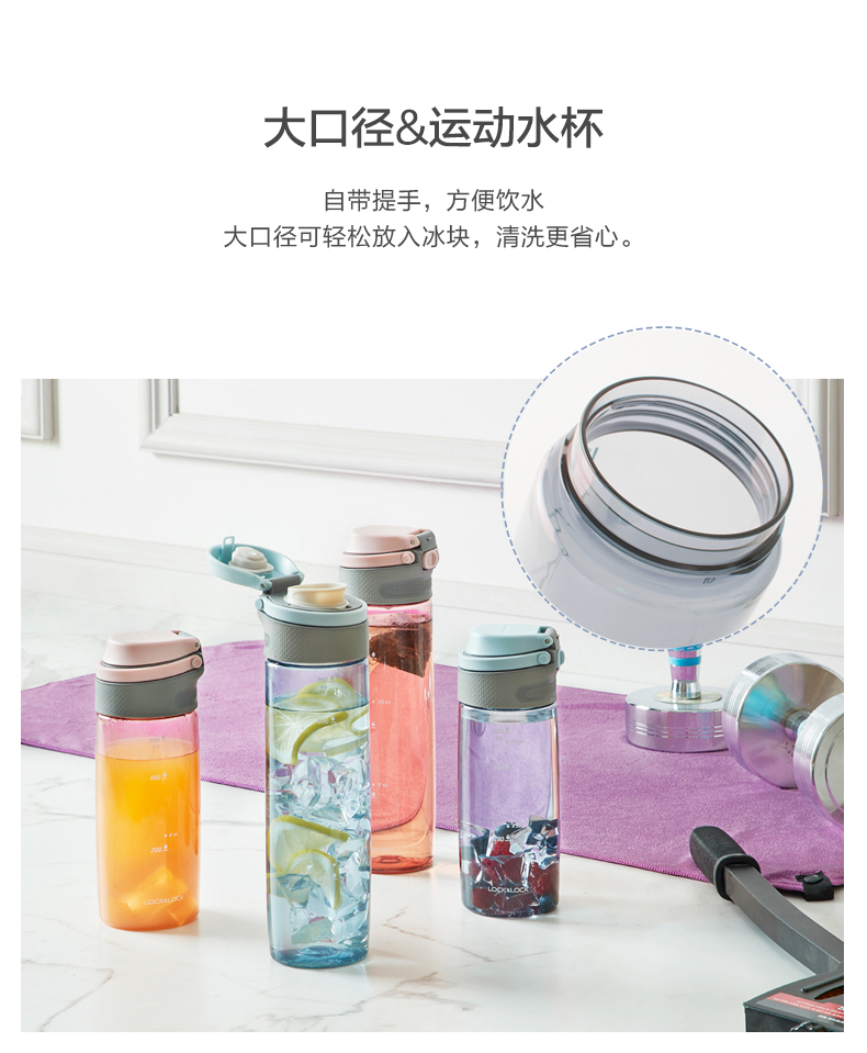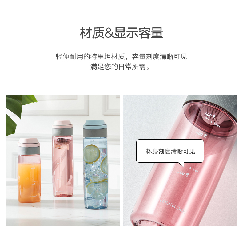 乐扣乐扣(LOCK&LOCK)运动水杯女tritan塑料便携户外健身杯子大容量水壶学生男 ABF762/ABF763