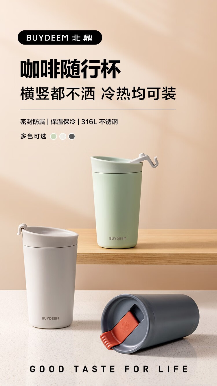 【小家电】北鼎保温杯咖啡杯 男女高颜值水杯 保温保冷咖啡随行杯CD1012HF